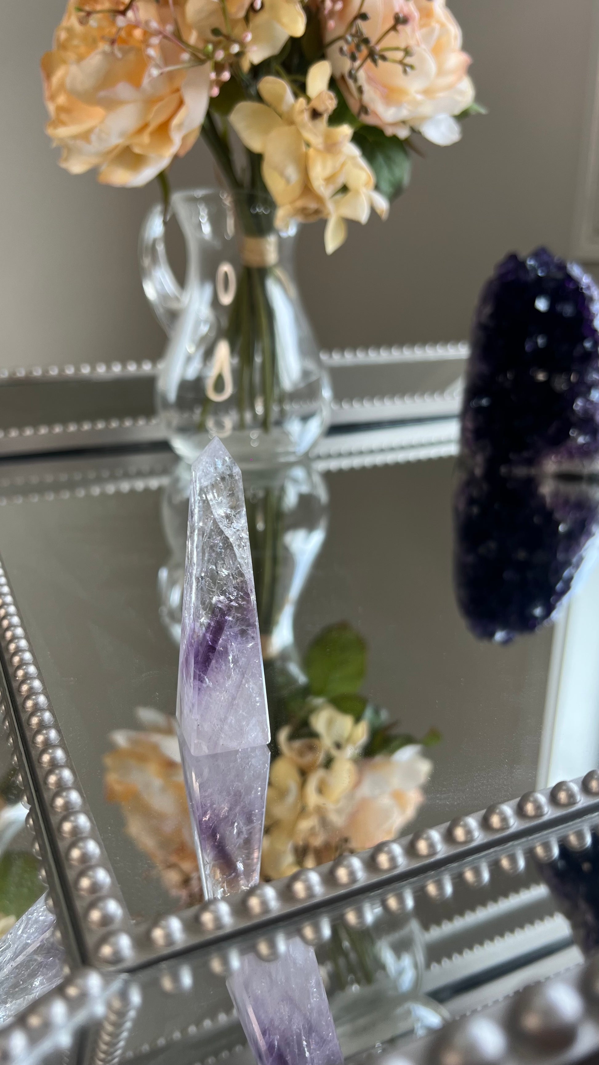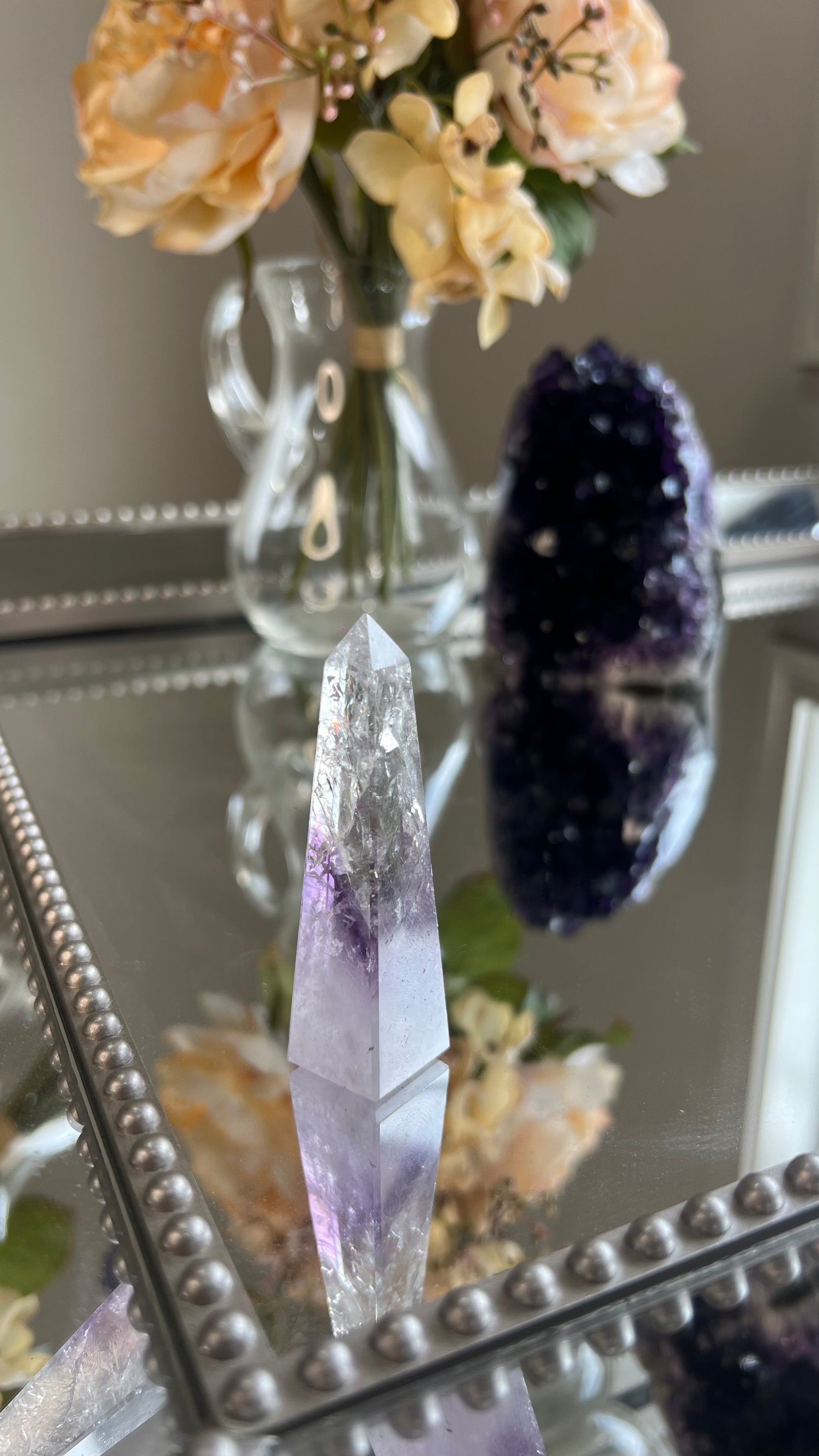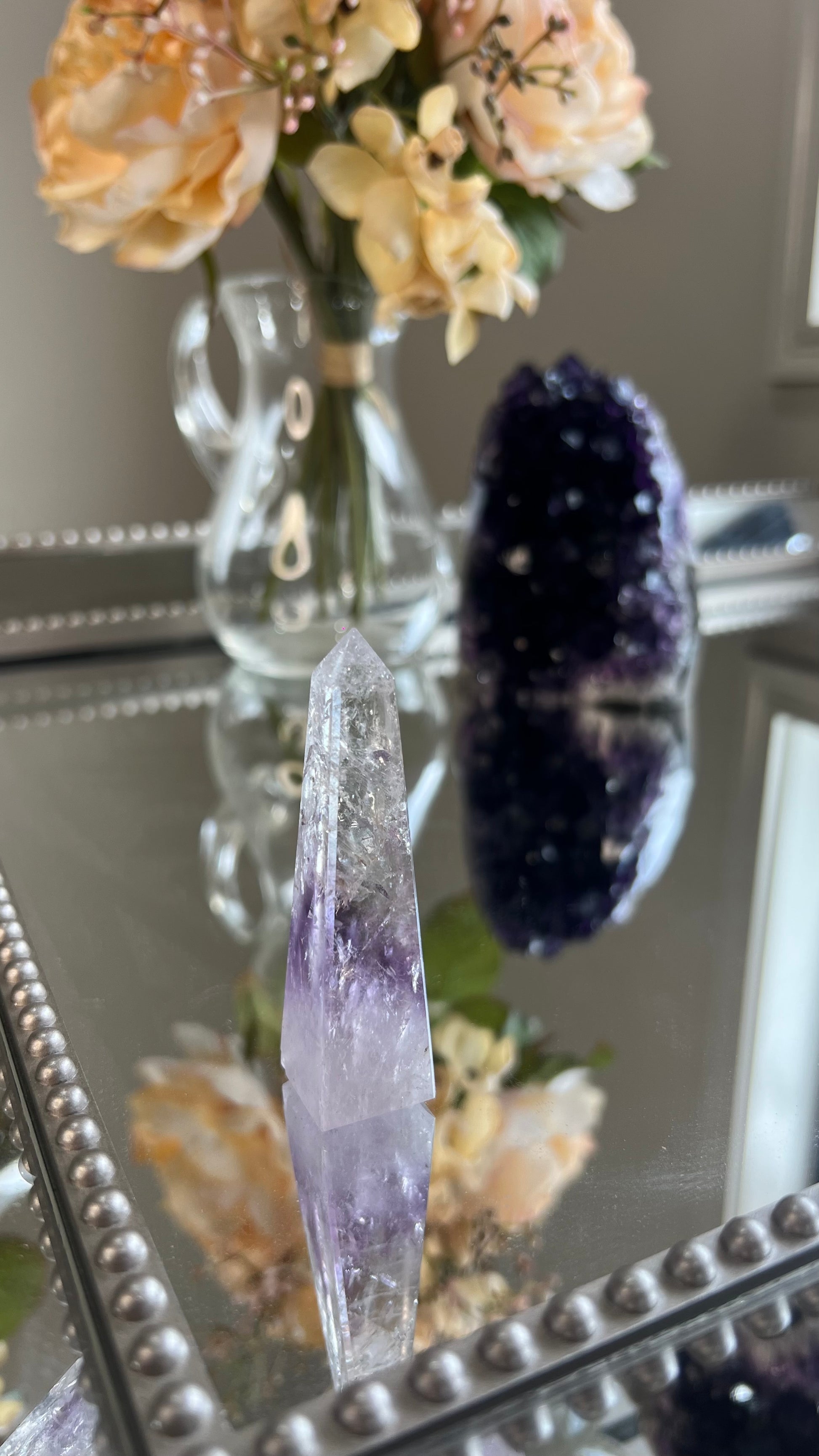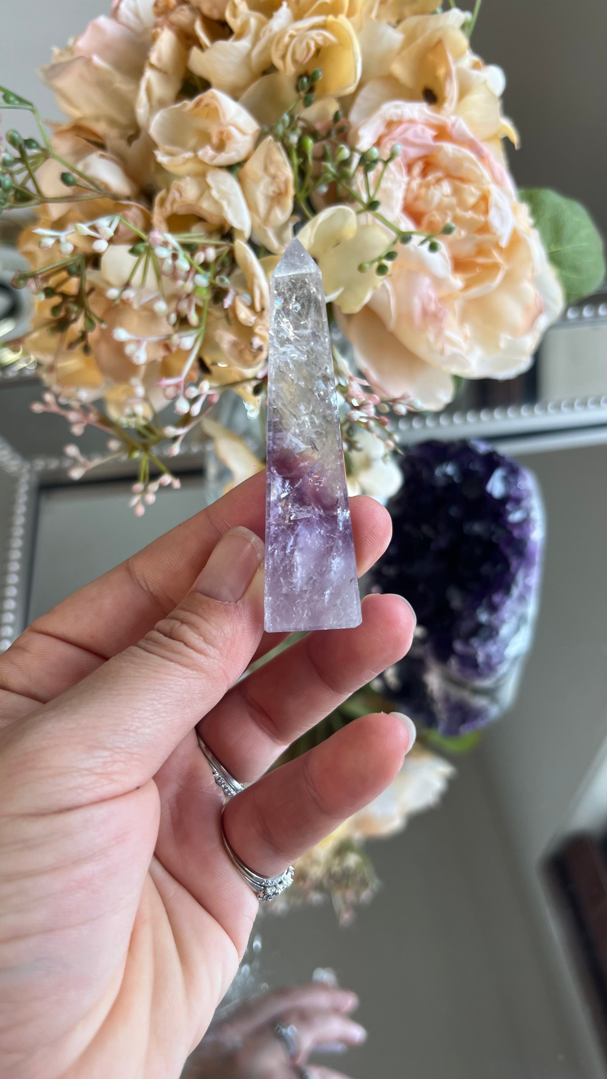 Experience the magical wonders of Amethyst or also known as the Greek word Amethystos - the sober stone. Phantom Amethyst is a wonderful stone for Spiritual growth and advancement. It is one of the most beautiful healing crystals out there connecting you directly to the ancient Divine temples. Healers across the world use amethyst in their everyday practices as it strengthens intuition and encourage spiritual wisdom. It neutralises any stress, Anxiety & mood swings which helps calm the mind. Amethyst encourages inner peace, tranquility & allowing for emotional stability & clarity to seamlessly flow.