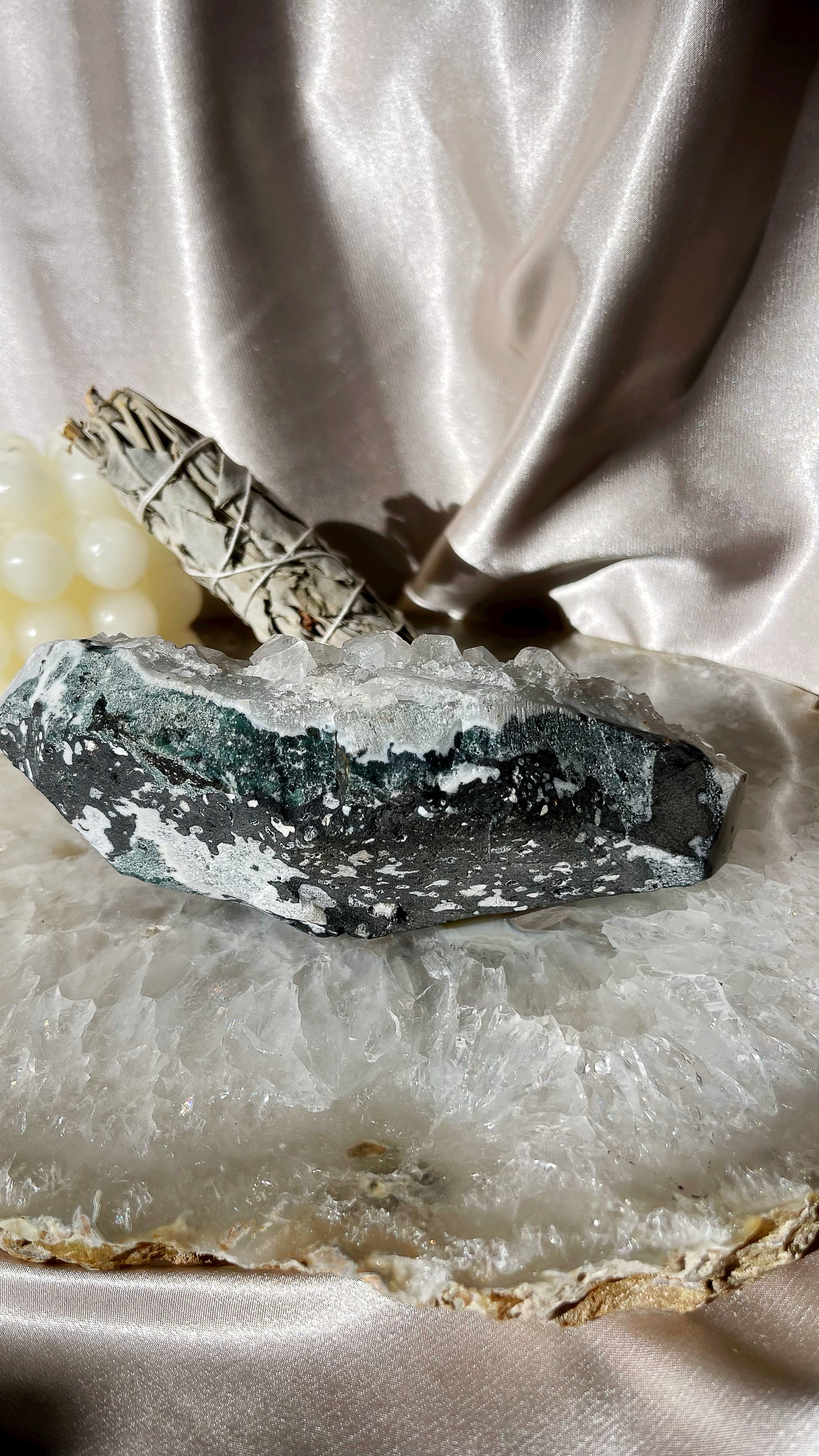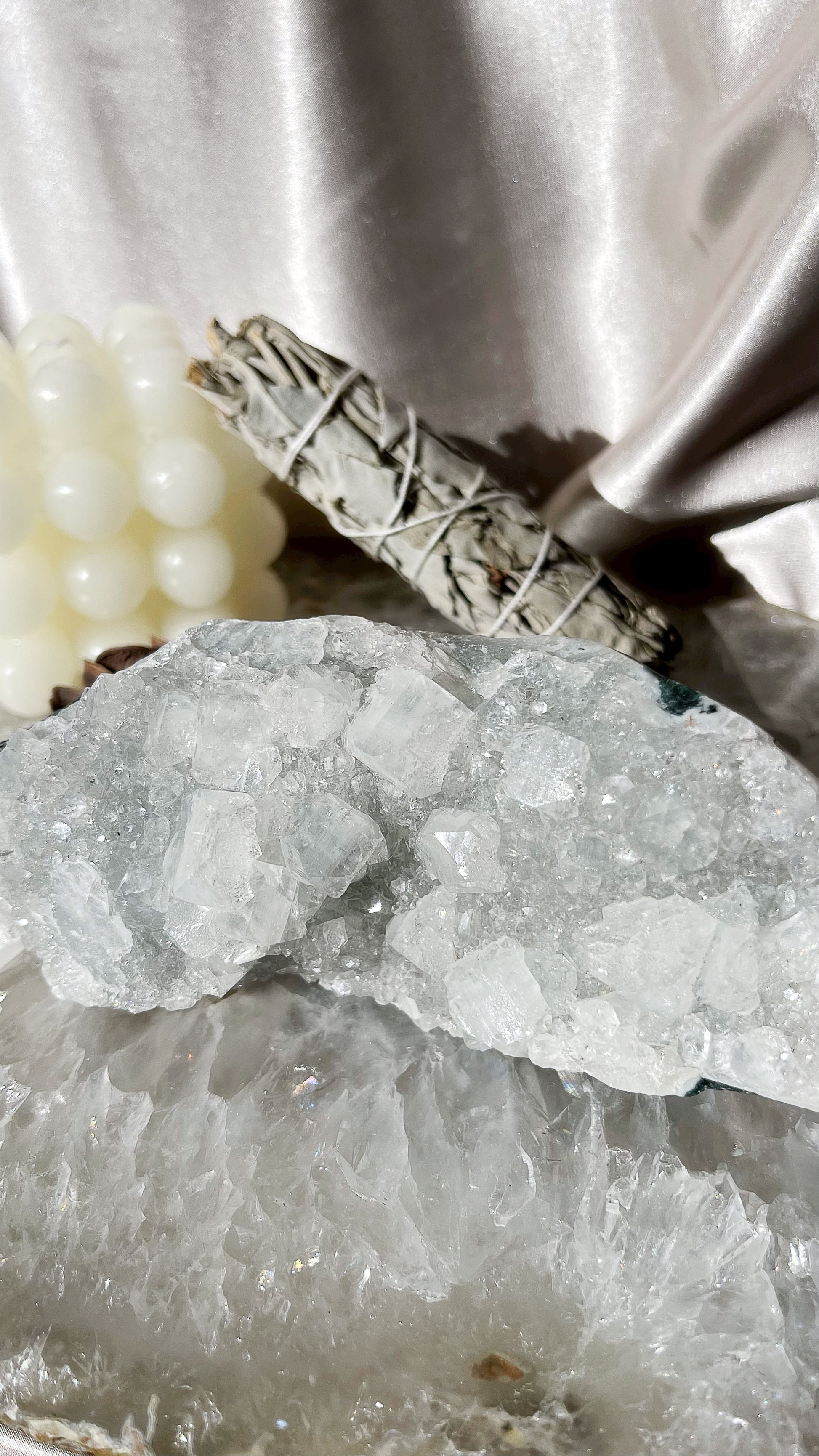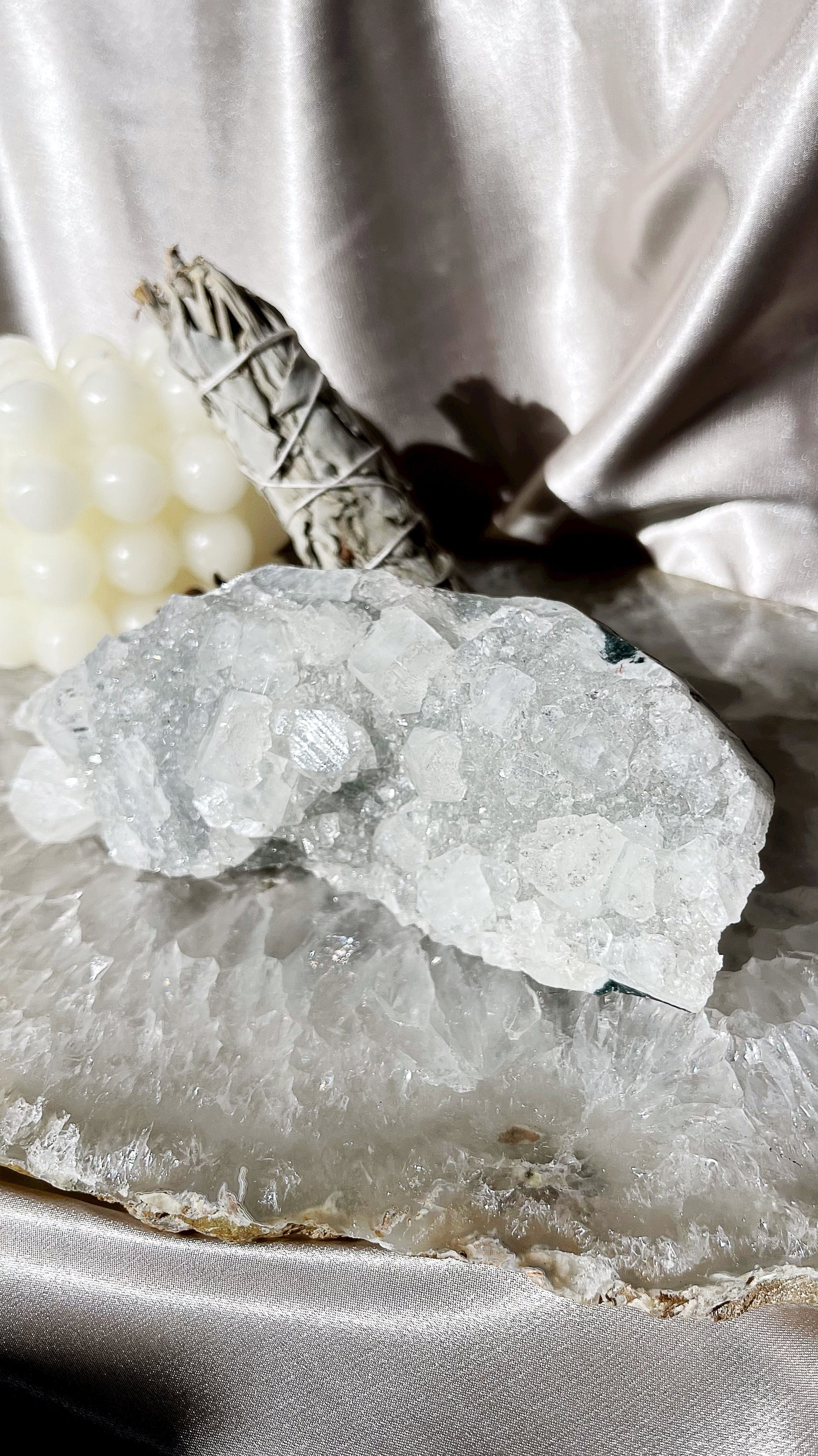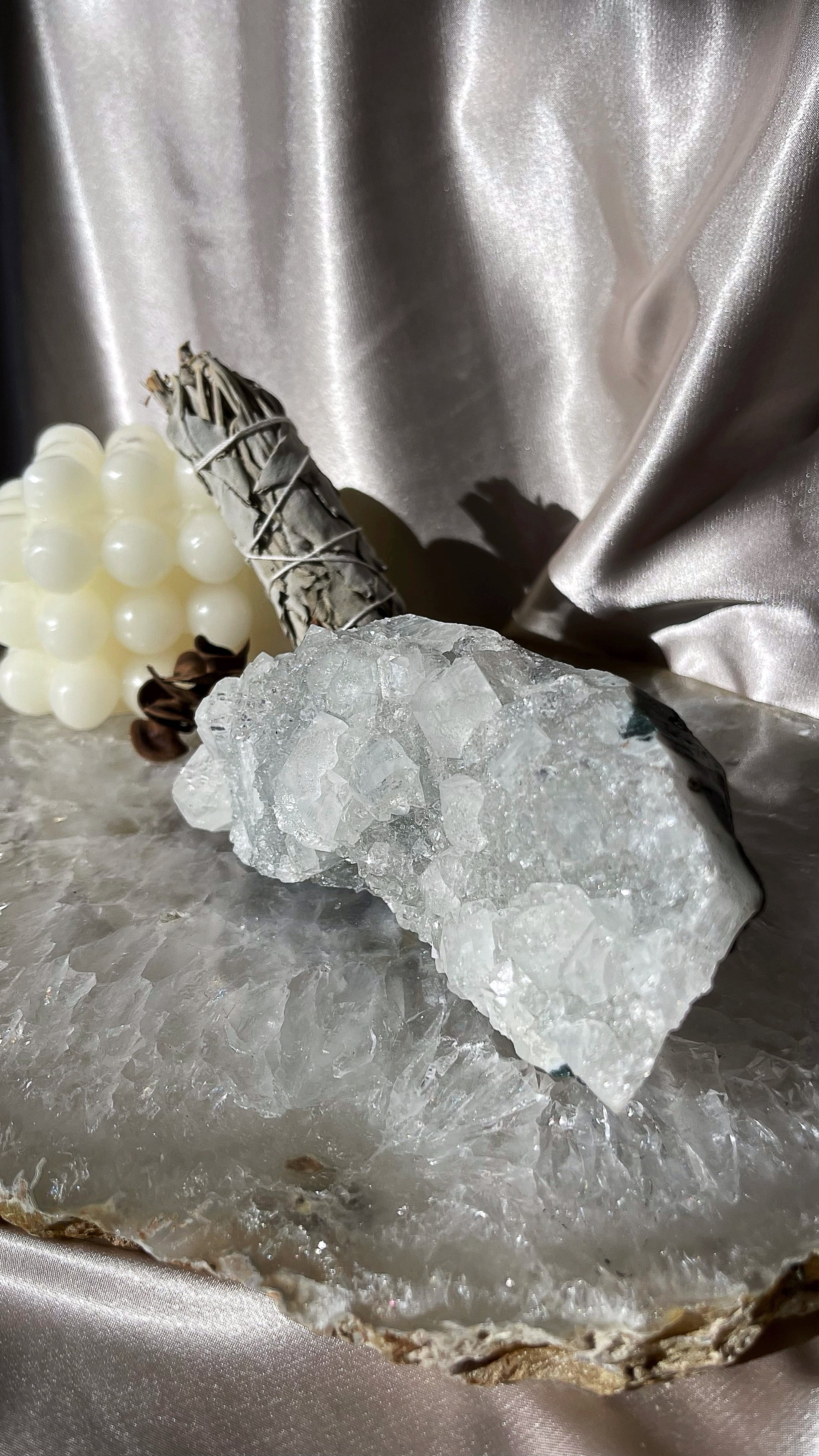 Apophyllite is a very high vibrational stone that helps one attune their energies to those of higher dimensions and realms. It assists in the communication between the angelic realms creating a powerful connection between our Crown & third eye chakra. It is a great stone to meditate with allowing what comes forth to be made clear & assisting in expanding ones consciousness