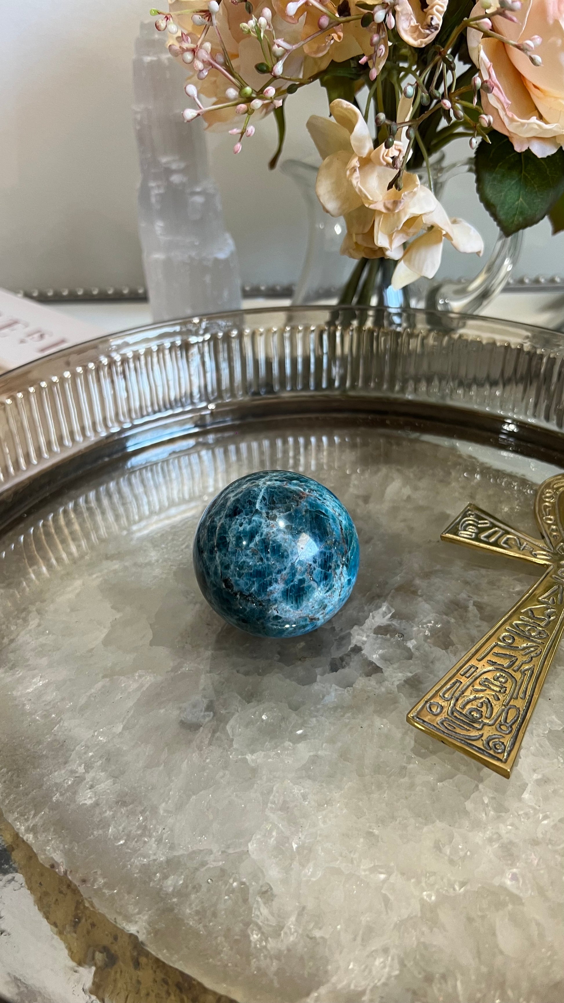 Blue apatite is known as a powerful manifestation stone, encouraging you to pursue your goals & dreams even if it may seem difficult to achieve. It assists in clearing any confusion, inducing creativity & motivation.