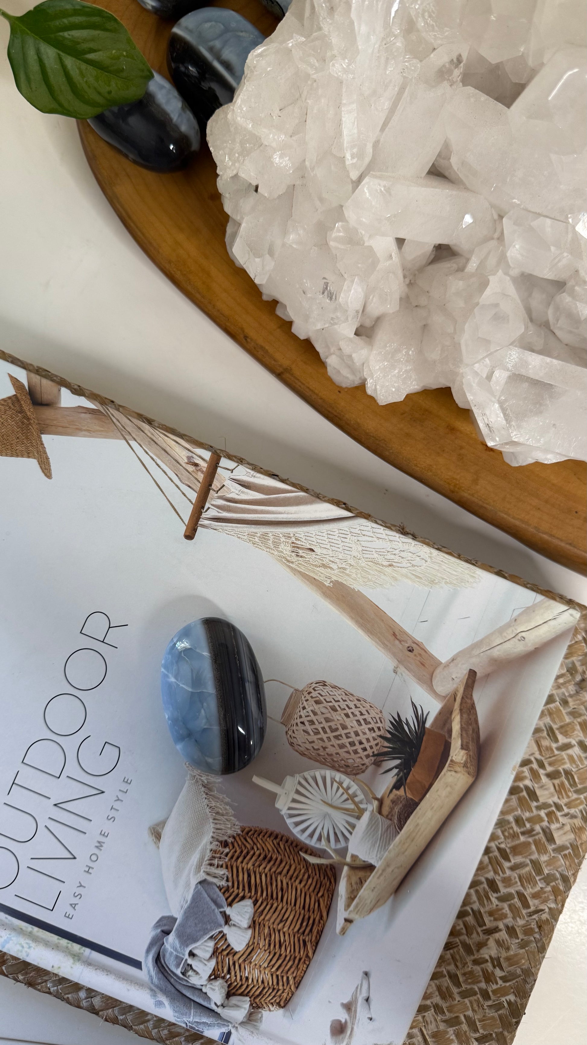 On a spiritual level, Blue Owyhee Opal is a stone of clarity, communication & peace. It gently opens the throat chakra, encouraging you to express your truth with compassion, honesty & confidence. This crystal is deeply connected to the element of water, reminding us to let go, flow & trust in life’s natural rhythm.