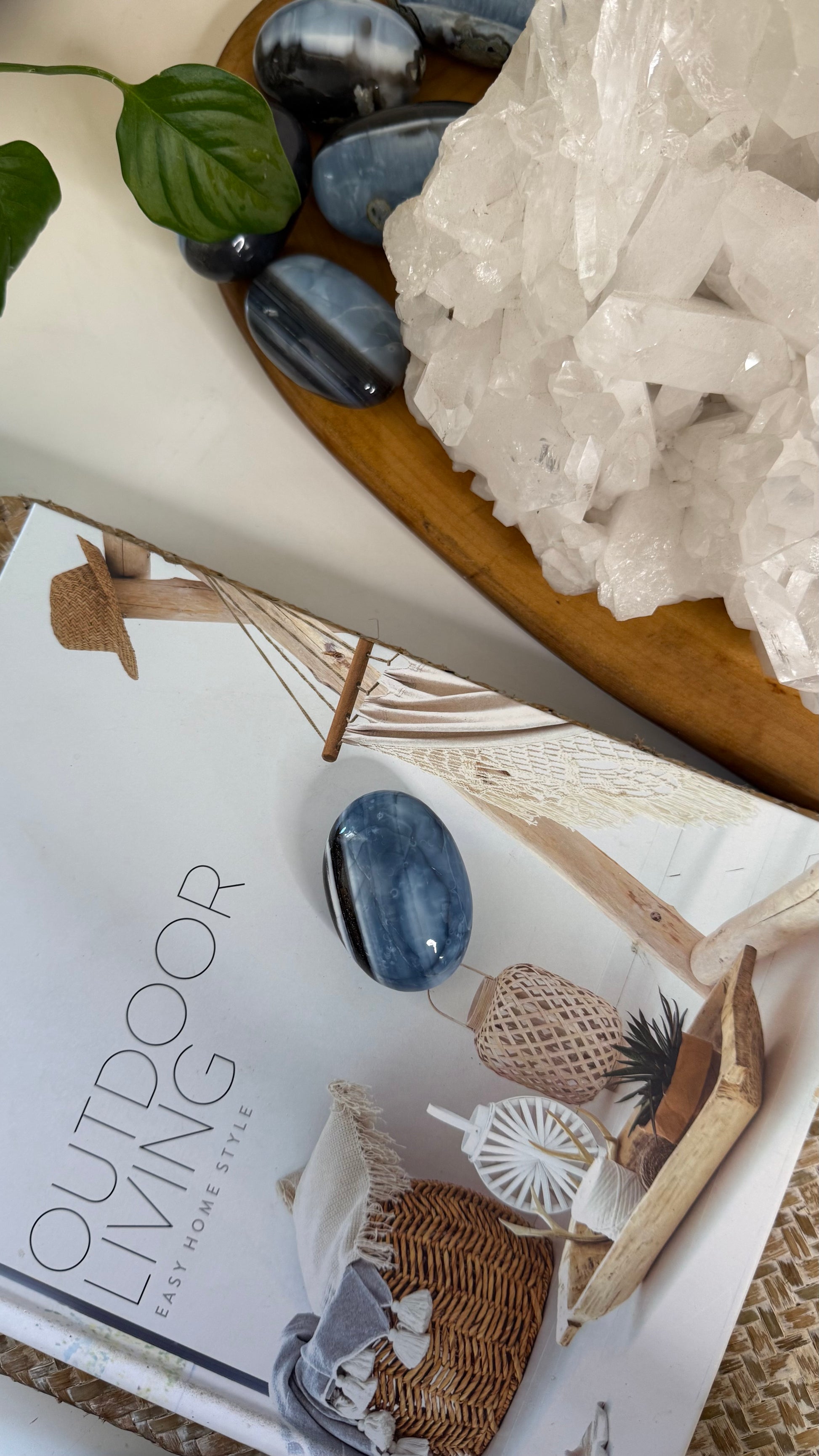 On a spiritual level, Blue Owyhee Opal is a stone of clarity, communication & peace. It gently opens the throat chakra, encouraging you to express your truth with compassion, honesty & confidence. This crystal is deeply connected to the element of water, reminding us to let go, flow & trust in life’s natural rhythm.