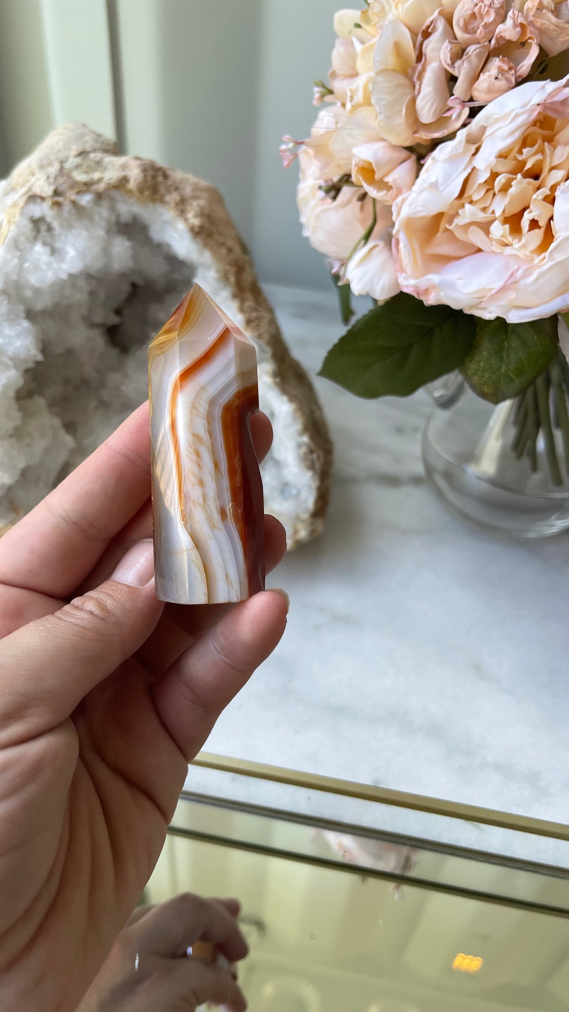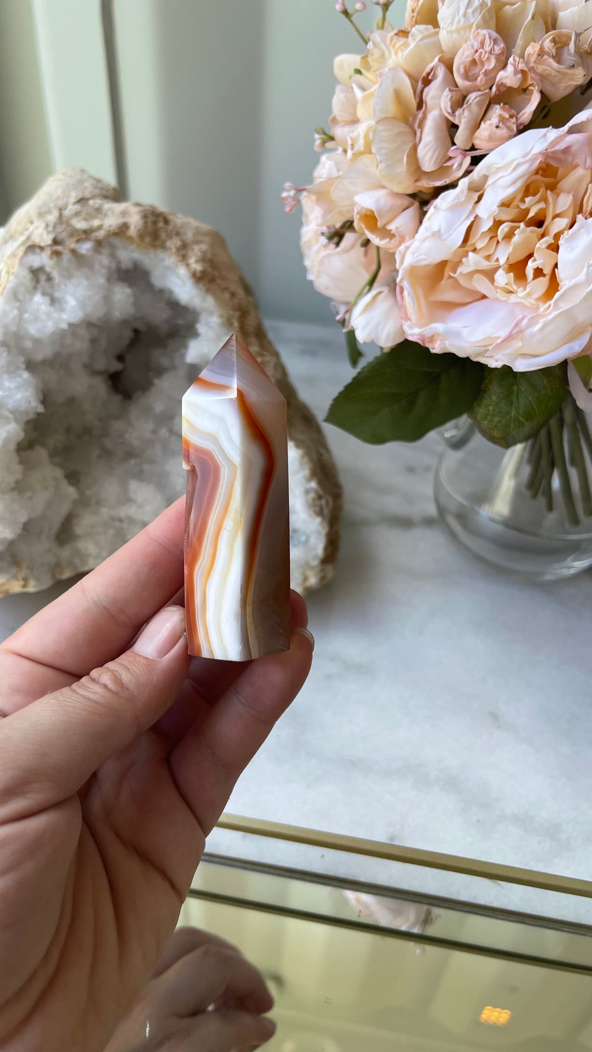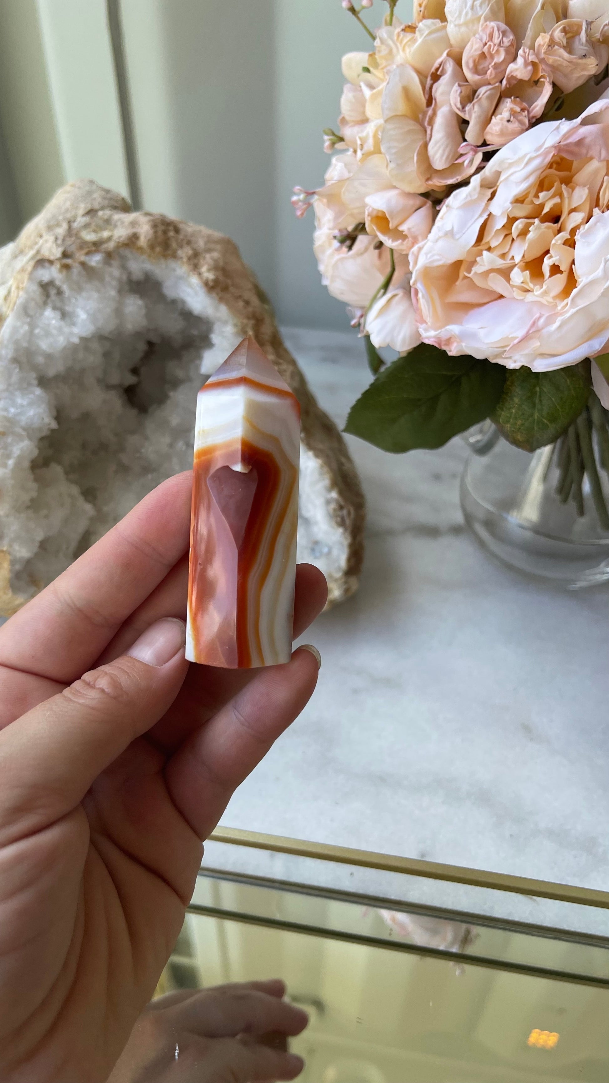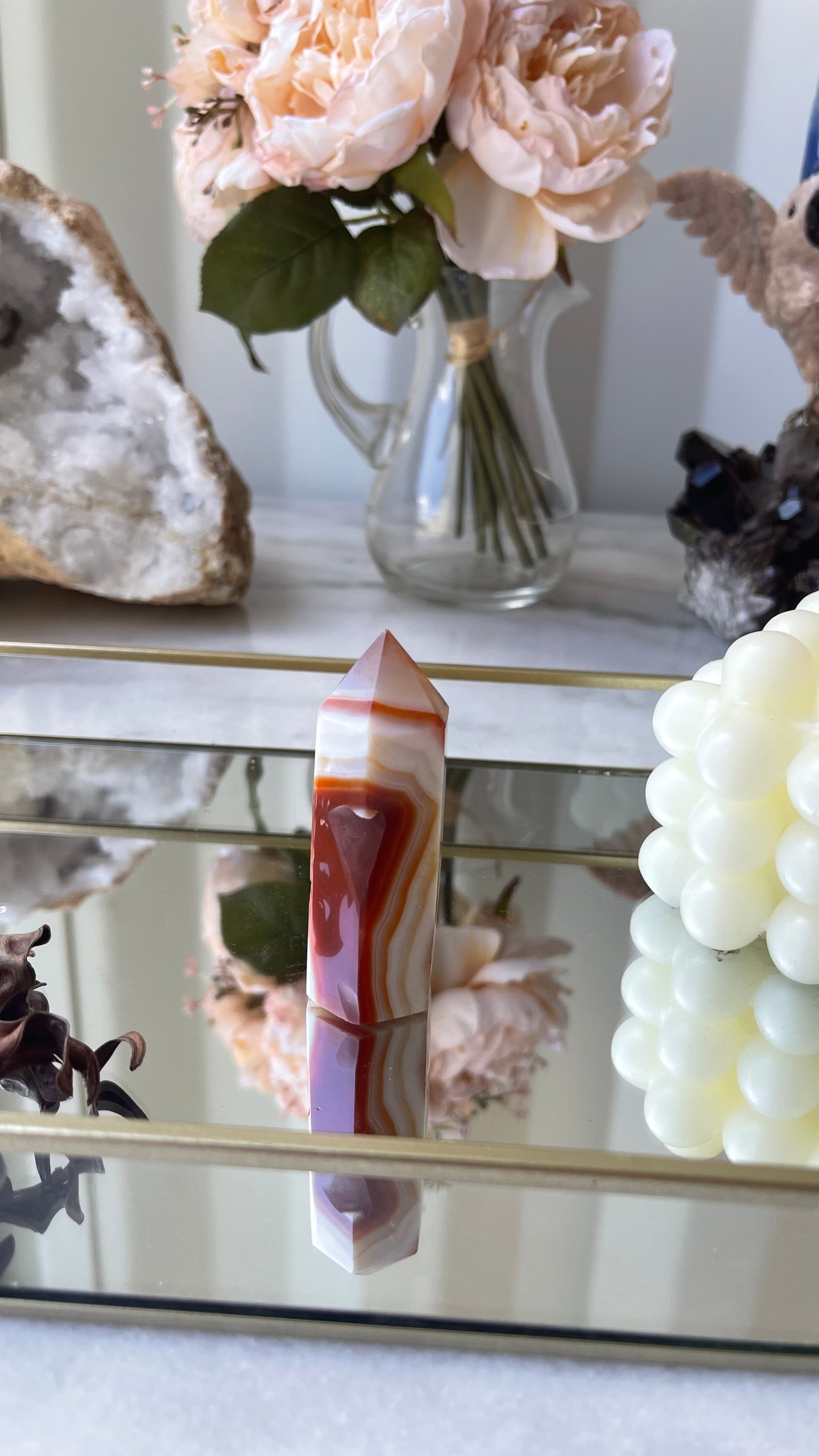 Carnelian crystals are thought to possess protective qualities against negative energy and to attract good fortune. They're believed to calm fear and anger, promoting emotional strength and stability, while also fostering self-confidence, creativity, and motivation. Carnelian, a stone traditionally associated with heightened passion, artistic expression, love, and desire, serves as both a Sacral and Root Chakra crystal, embodying ambition, creativity, drive, and determination. Its potent energy not only revitalizes and motivates, fostering creativity in new pursuits, but also acts as a protective shield against envy, rage, and resentment, instilling a love for life. Whether in Pink, Orange, or Red hues, Carnelian plays a pivotal role in matters of love and its consummation, alleviating jealousy, possessiveness, and addressing issues related to sexual anxieties and eating disorders. Notably, Orange Carnelian symbolizes fertility and potency, associated with conceiving a child. Regardless of color, Carnelian aids in rekindling passions within loving relationships, and when paired with Rose Quartz, it harmonizes sexual energy with the vibration of love. Recognized as the Singer's Stone, Carnelian clarifies the voice and boosts confidence in various performances, transforming timid speakers into eloquent and bold communicators. Additionally, Carnelian serves as a support in overcoming various forms of abuse, fostering self-trust and confidence in one's perceptions. On a physical level, its life force stimulates metabolism and blood circulation, positively impacting reproductive organs, enhancing fertility, addressing issues of frigidity and impotence, offering relief from menstrual and menopausal symptoms. This revitalizing energy extends to combating depression, particularly in individuals of advanced age.