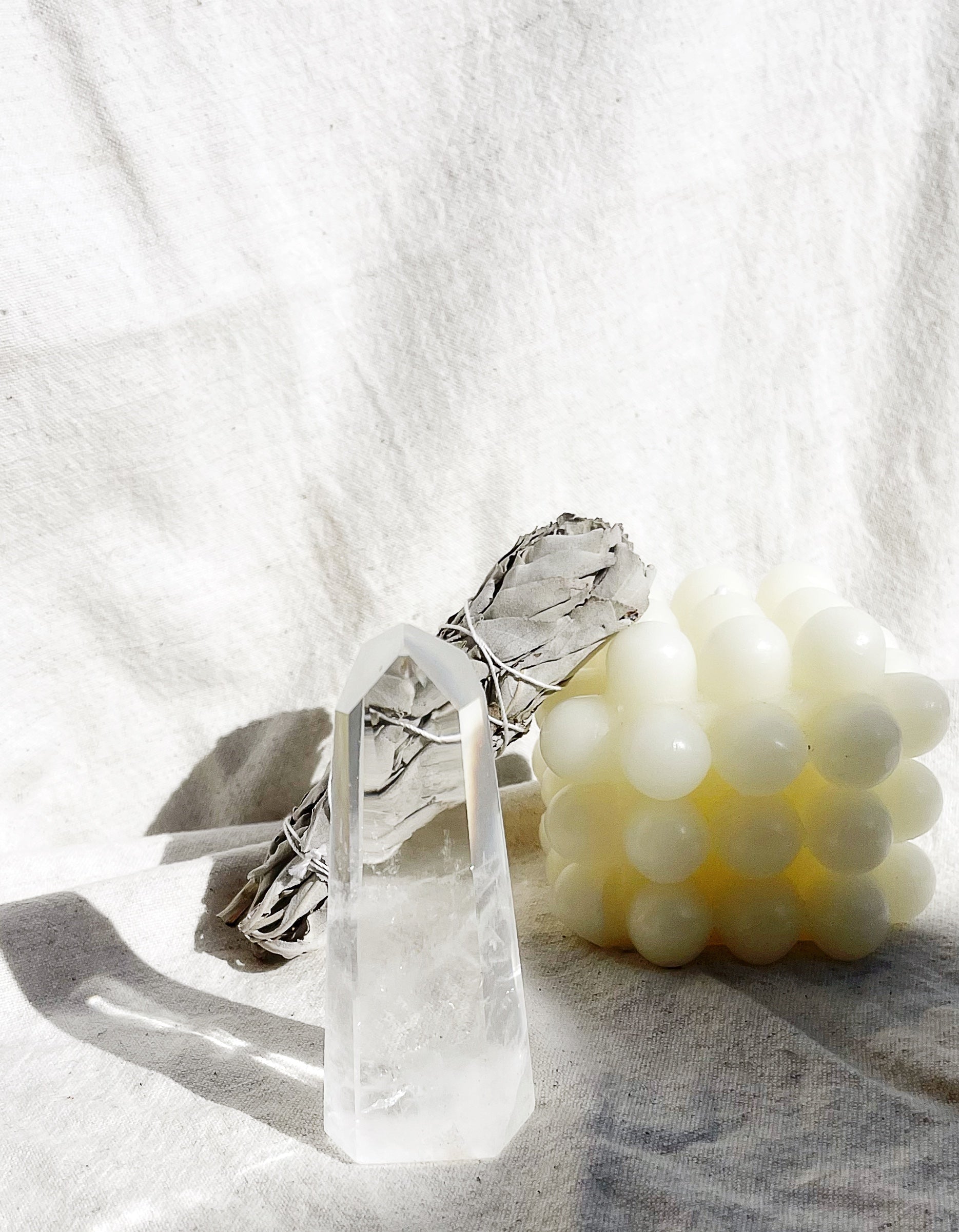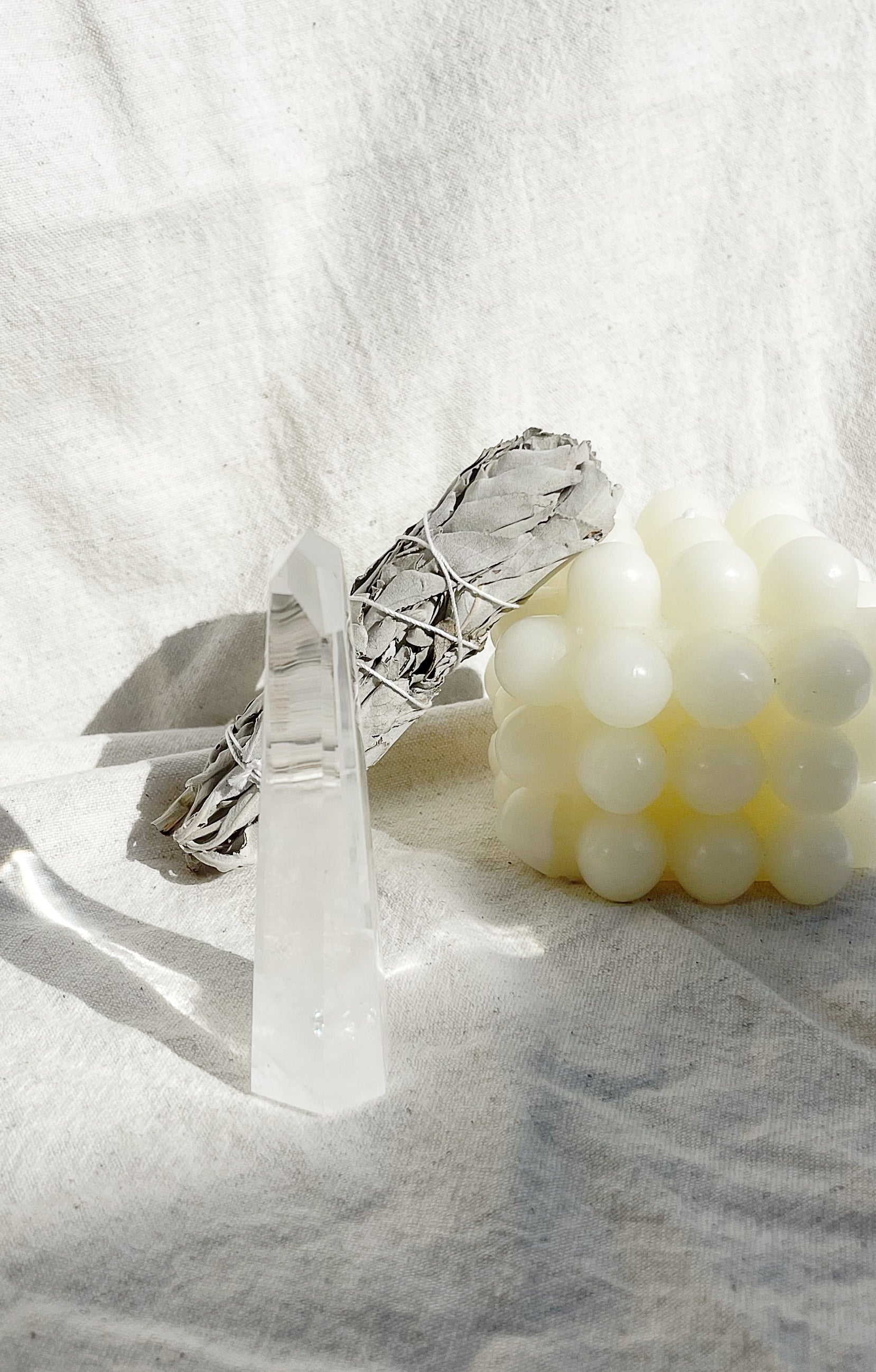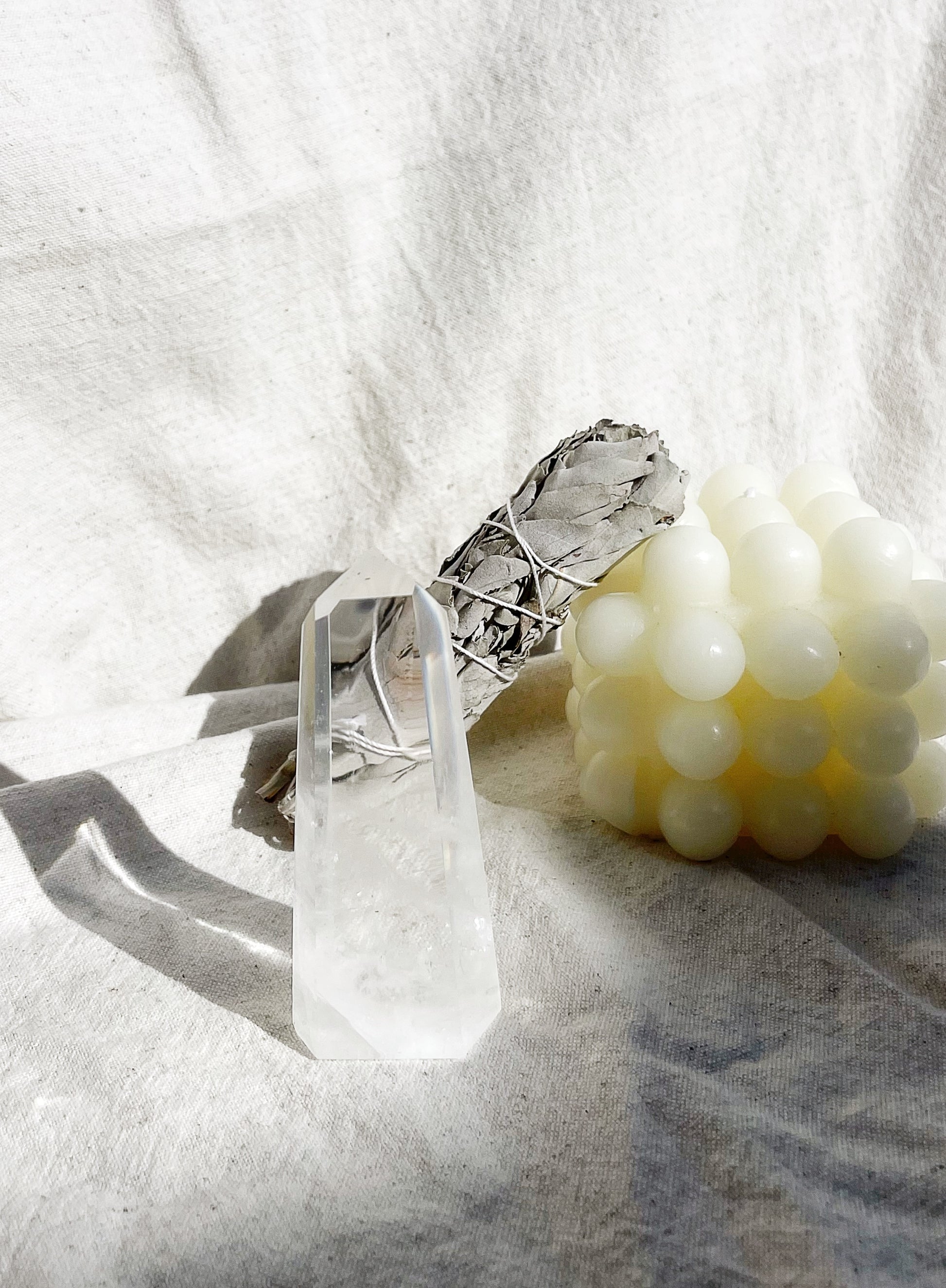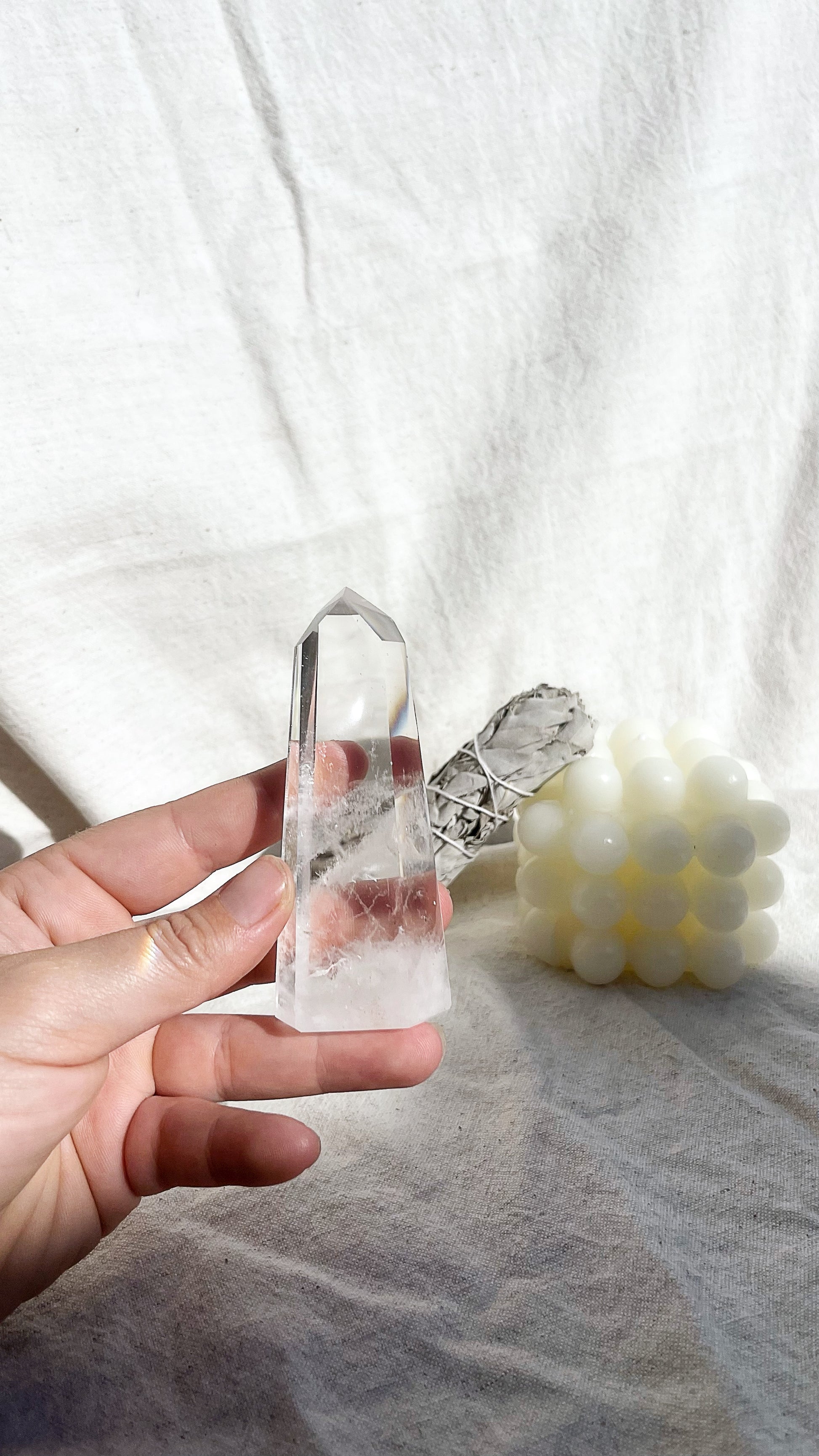 Clear quartz known as the “master healer”. It is a versatile and powerful crystal known for its clarity and amplifying properties. It is believed to enhance spiritual growth, intuition, and clarity of thought, as well as to amplify the energy of other crystals. Additionally, it is thought to promote harmony, balance, and healing by clearing negative energy and enhancing positive vibrations. It is often used for meditation, manifestation, and protection