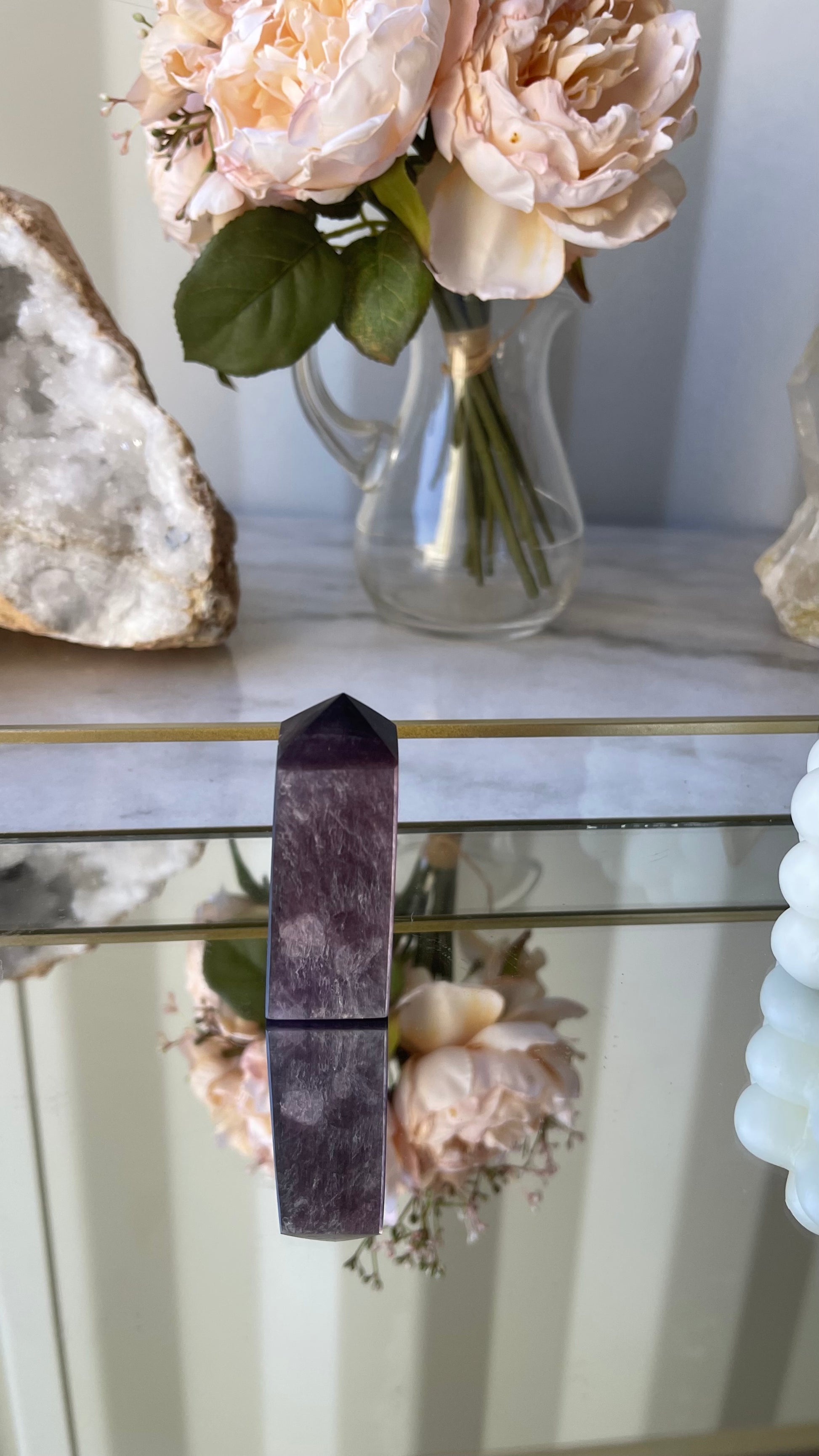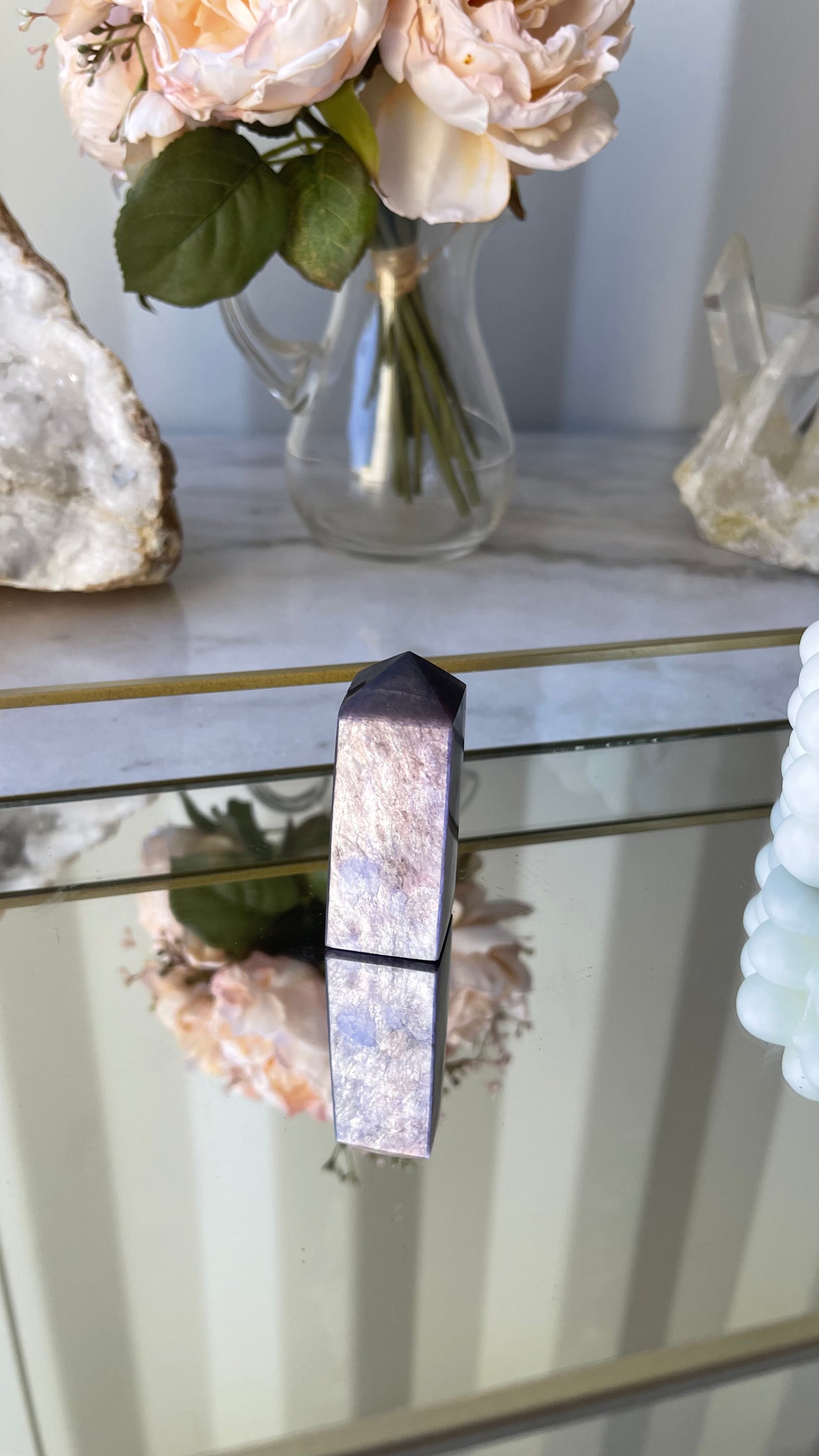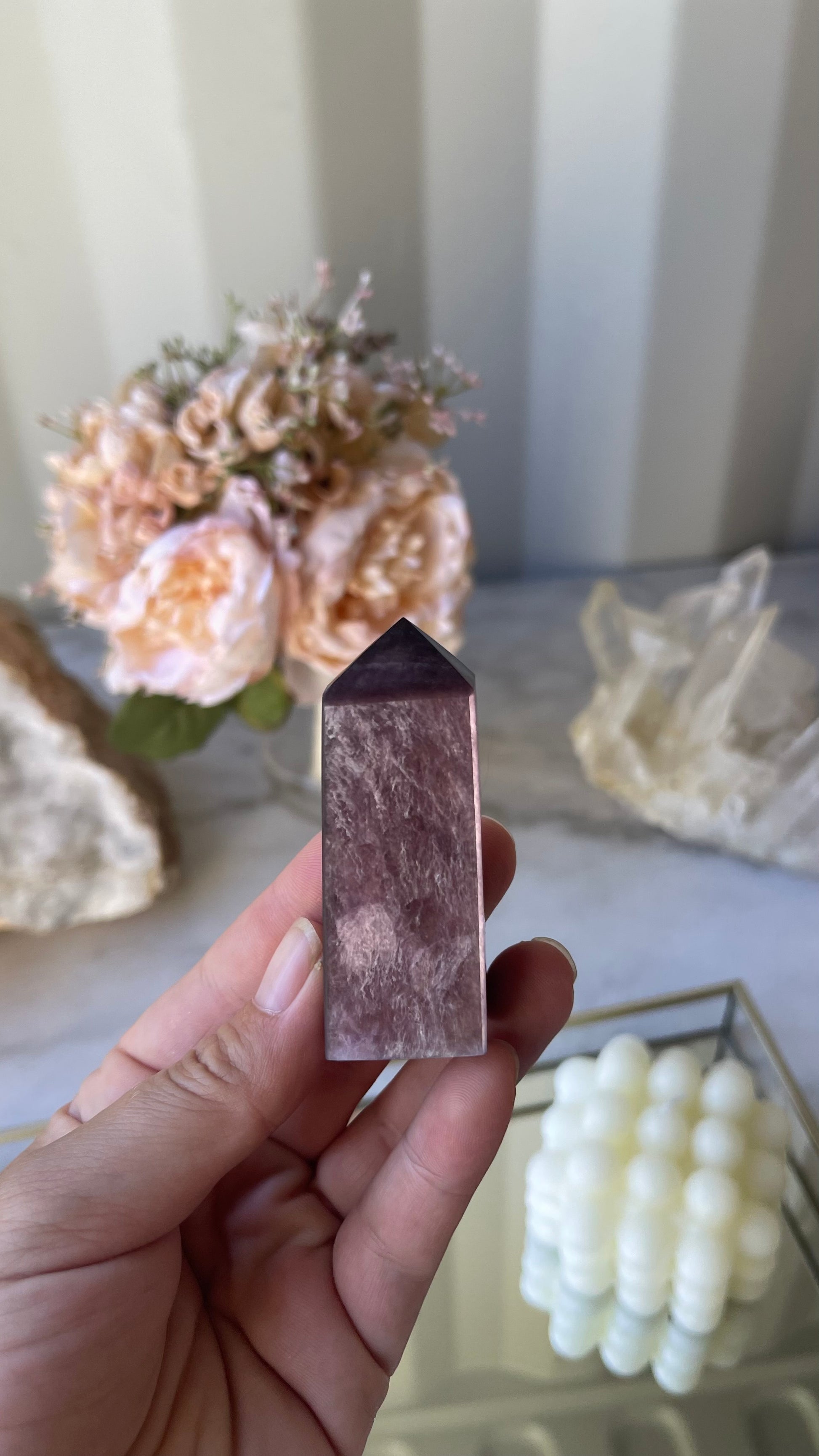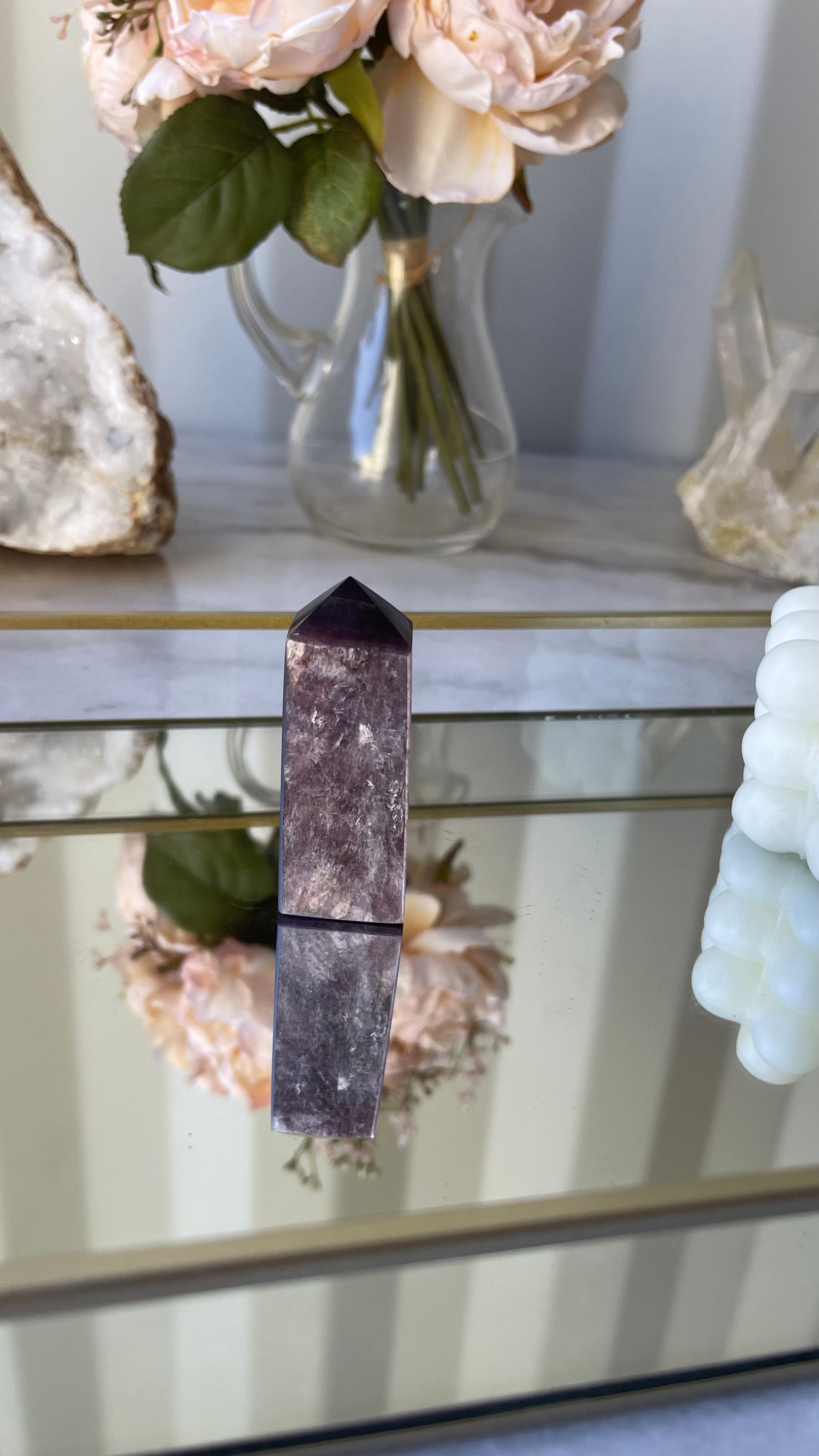 Gem grade Lepidolite towers – a synergy of nature's beauty and spiritual resonance. Lepidolite, a mesmerising purple lithium-rich mineral, is not just a stunning addition to your collection; it's a powerful spiritual ally.