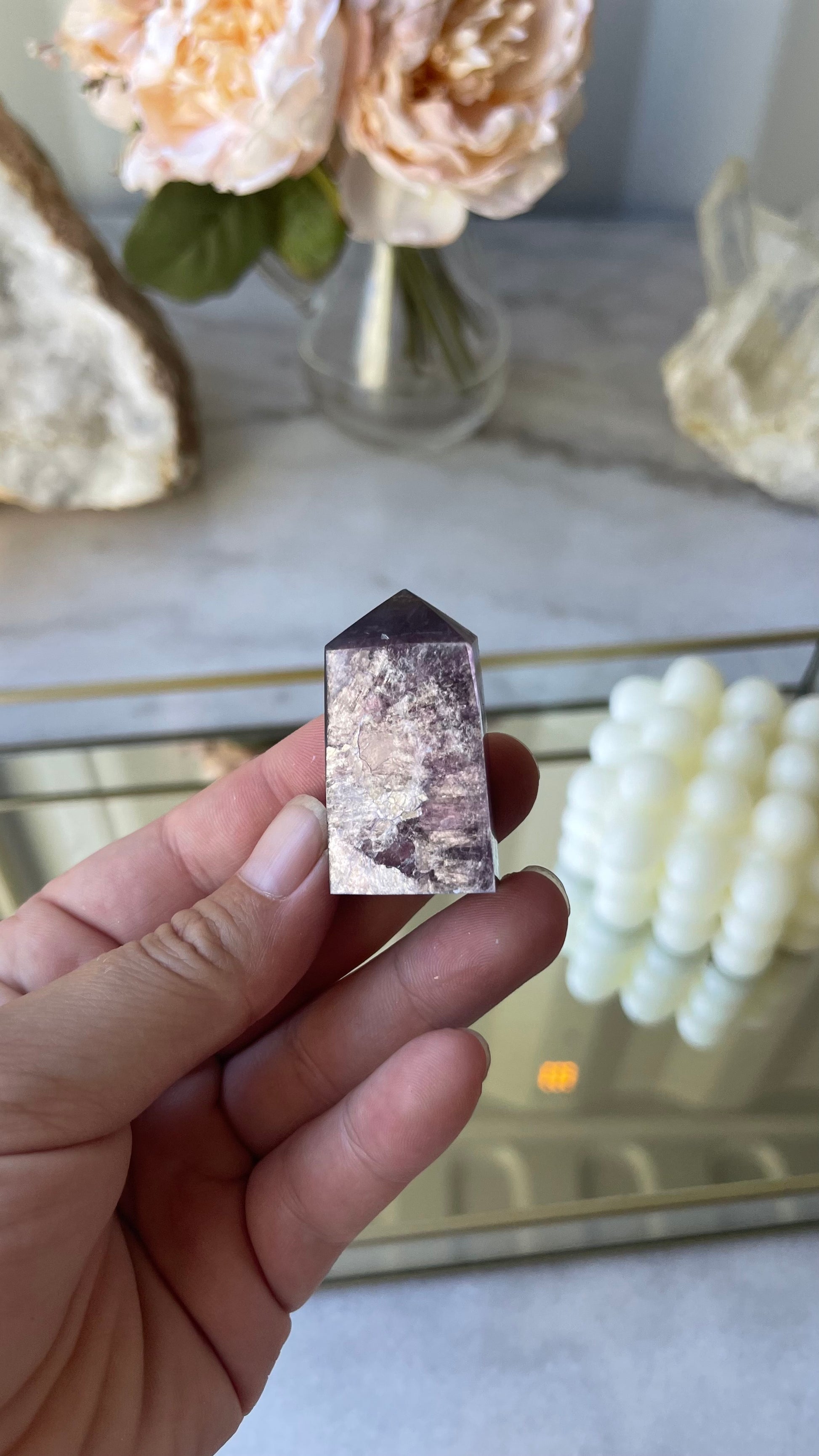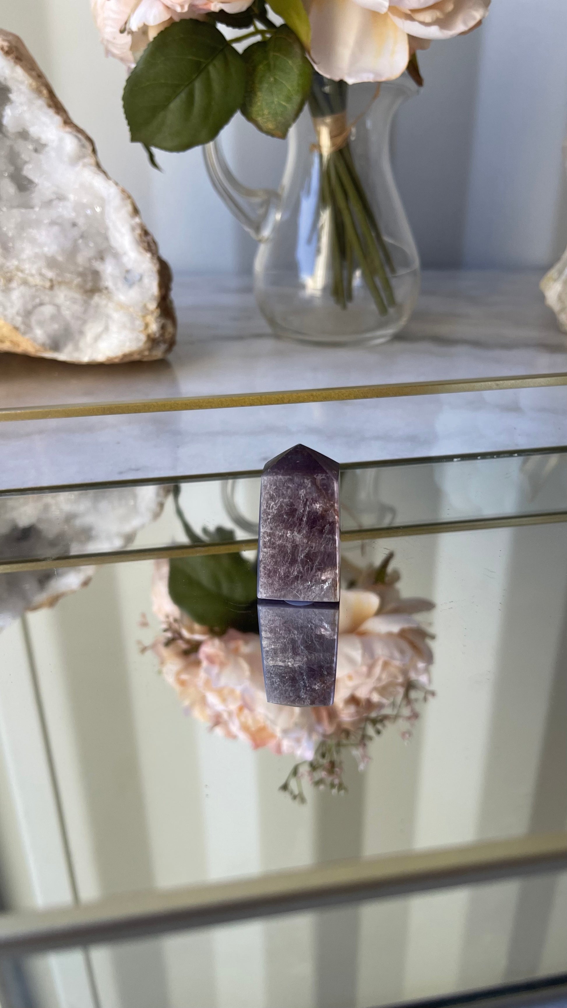 Gem grade Lepidolite towers – a synergy of nature's beauty and spiritual resonance. Lepidolite, a mesmerising purple lithium-rich mineral, is not just a stunning addition to your collection; it's a powerful spiritual ally.