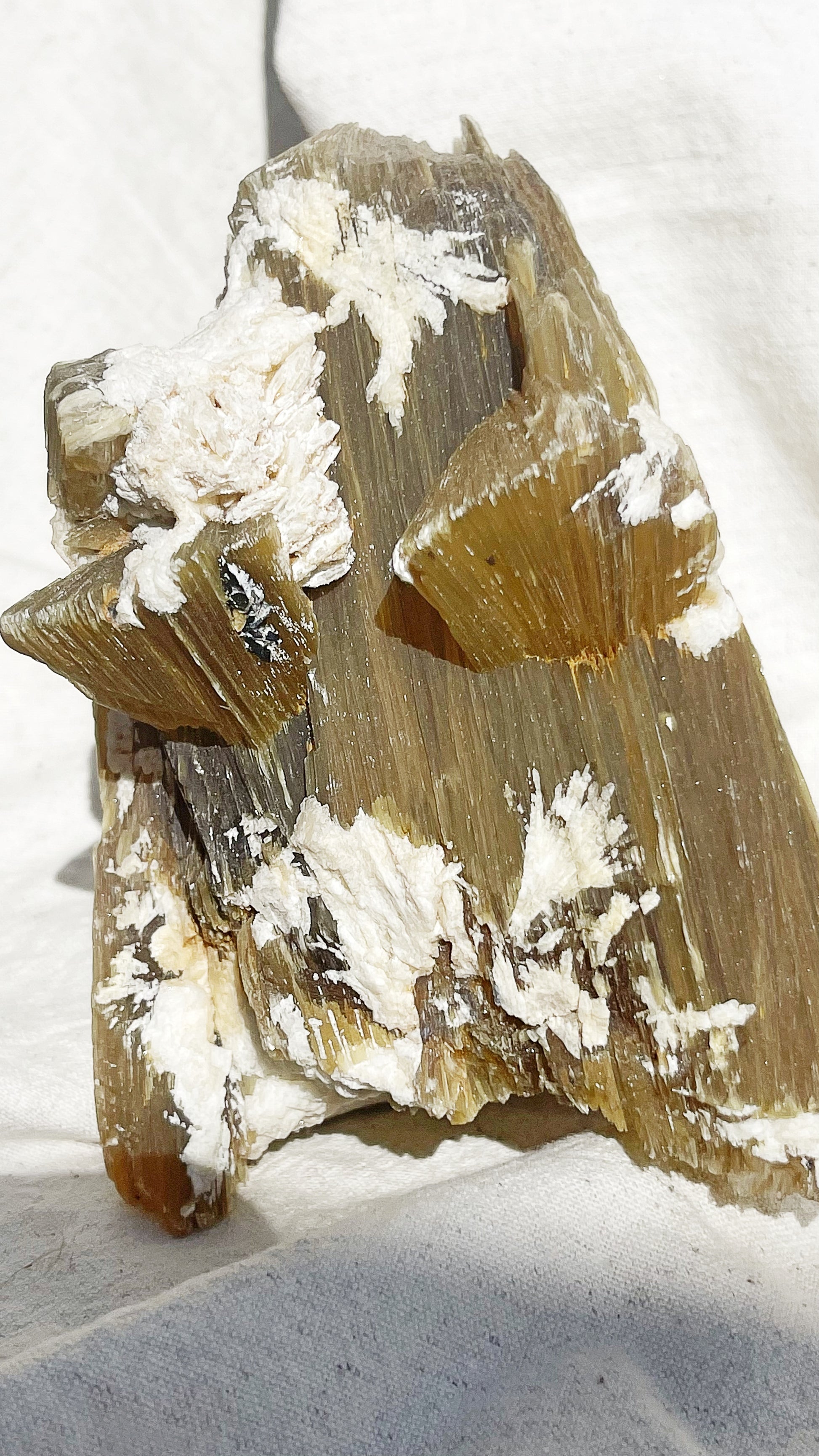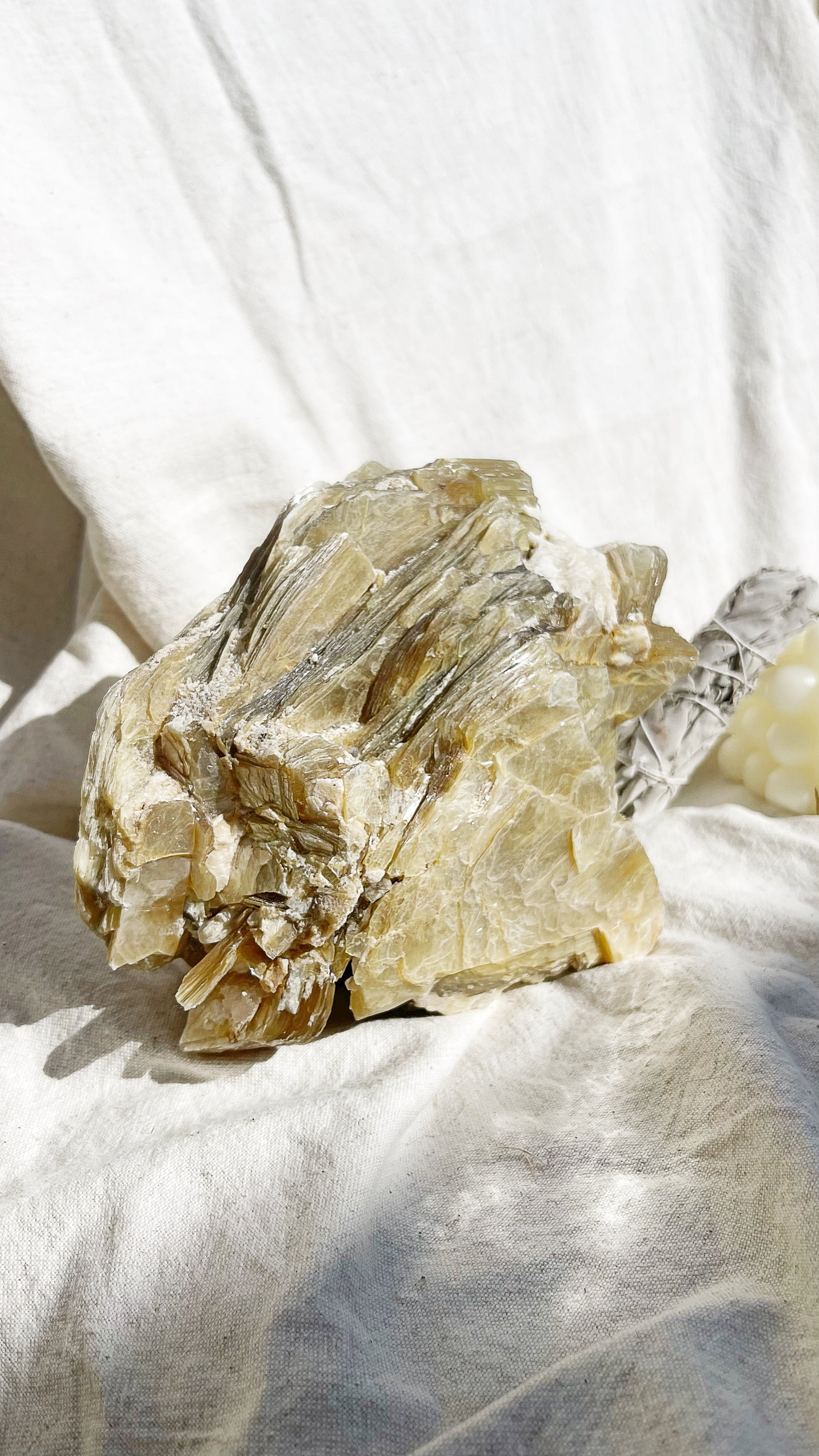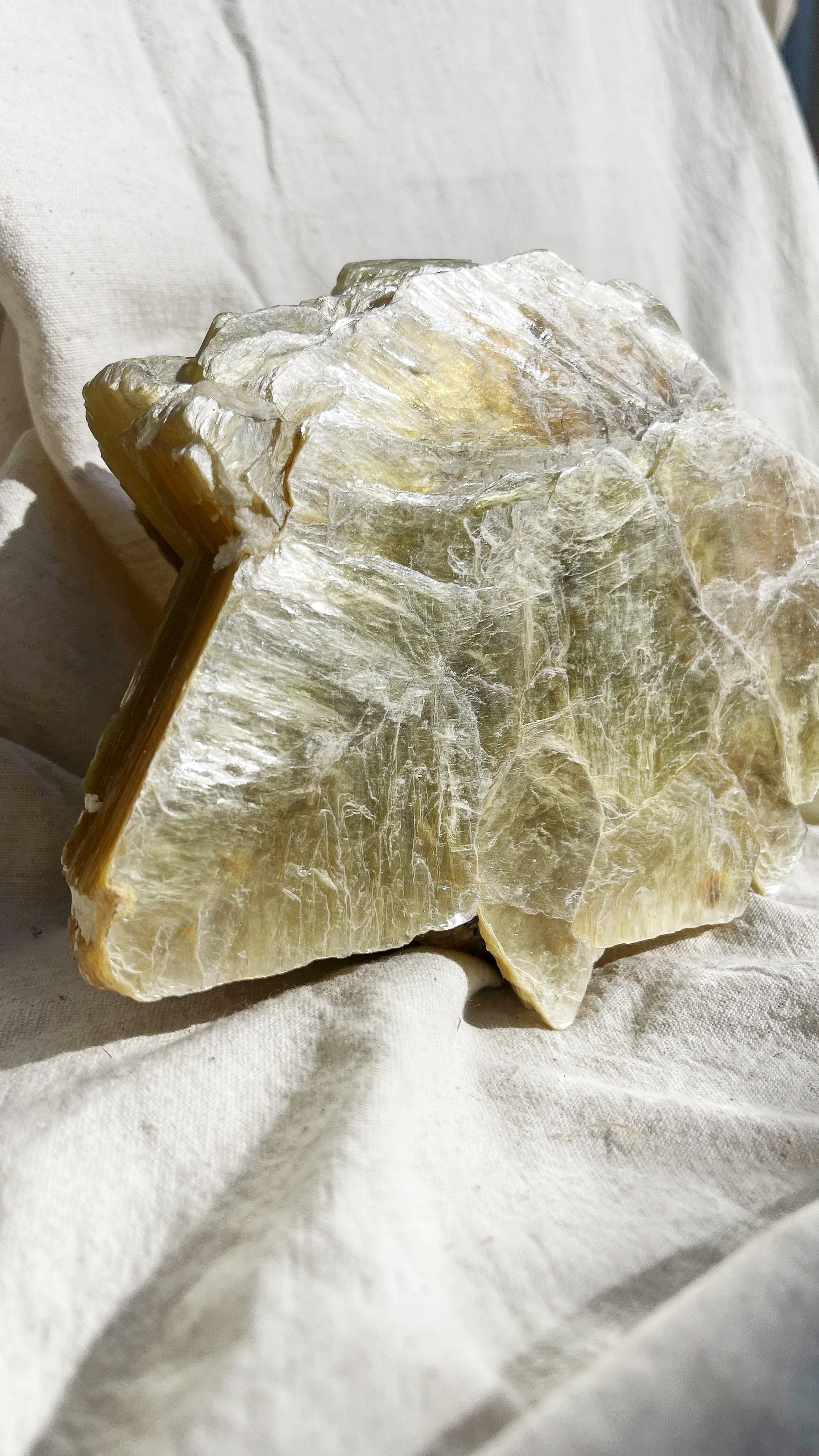 Golden mica, also known as Muscovite, holds significant metaphysical meanings and healing properties. Believed to attract abundance and prosperity, it also fosters mental clarity and self-reflection, aiding in the understanding of oneself and others. Additionally, this mineral is associated with protective energies and grounding, helping you feel connected to the Earth. In terms of healing, it is thought to assist in releasing emotional blockages, promoting emotional stability, and balance. Some proponents suggest that it aids in the treatment of physical ailments like insomnia, allergies, and dehydration, while also enhancing psychic abilities and facilitating spiritual growth and transformation