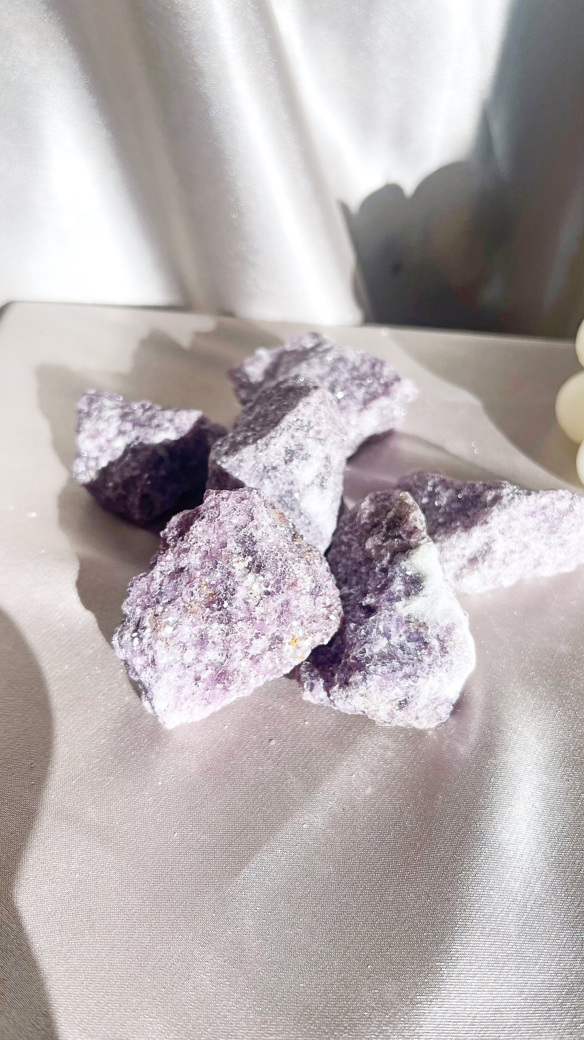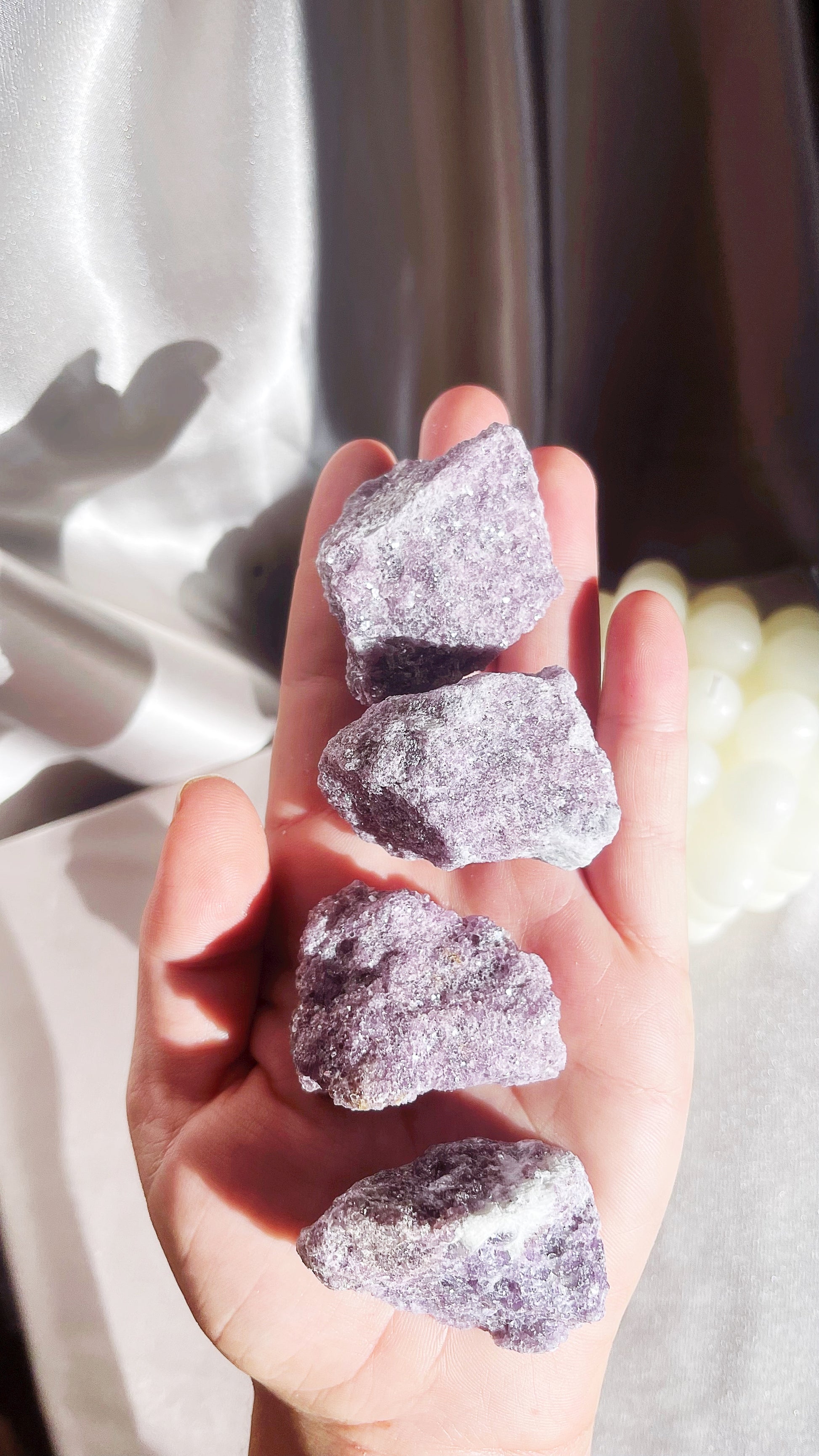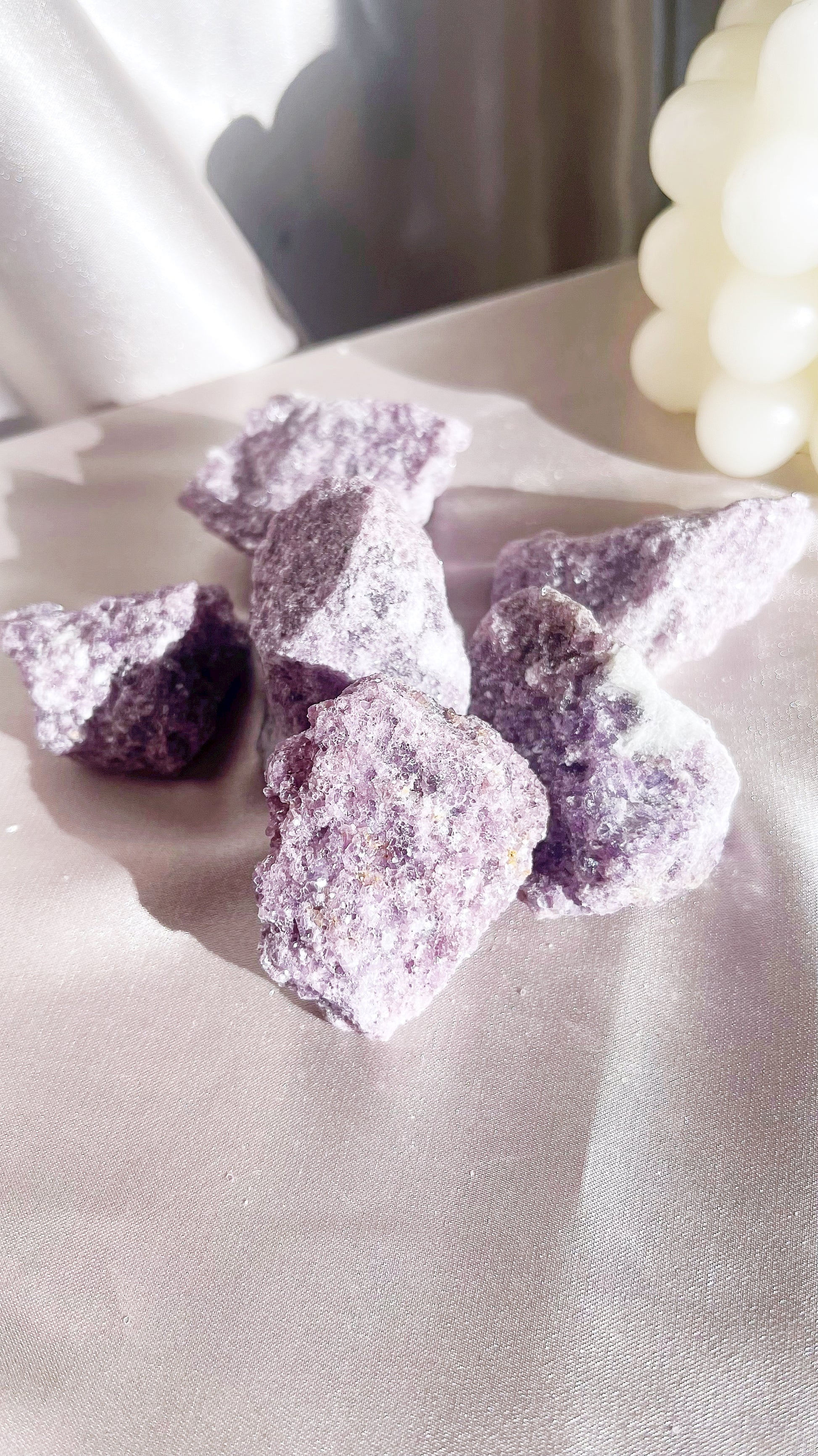 Lepidolite, a captivating mineral ranging from pale pink to purple, is renowned for its metaphysical attributes and healing potential. This scaly mica mineral is often employed to restore emotional equilibrium, ease anxiety and stress, promote mental clarity, release emotional baggage, improve sleep quality, and reduce stress, owing to its calming and soothing properties, as well as its lithium content. Additionally, it's believed to aid in spiritual growth, protect against negative energies, balance chakras, and enhance one's connection to the spiritual realm.
