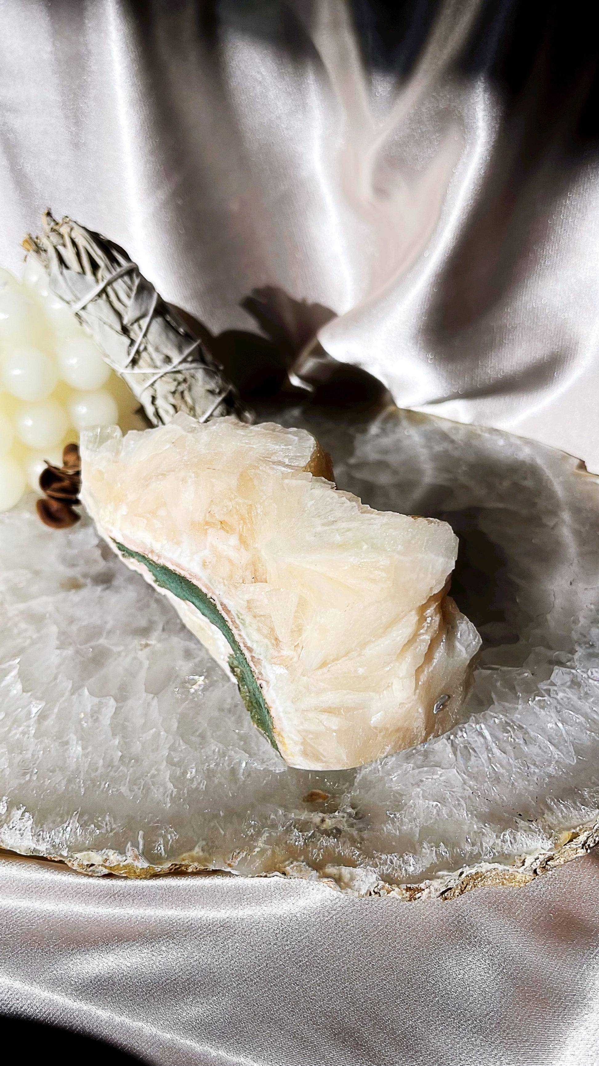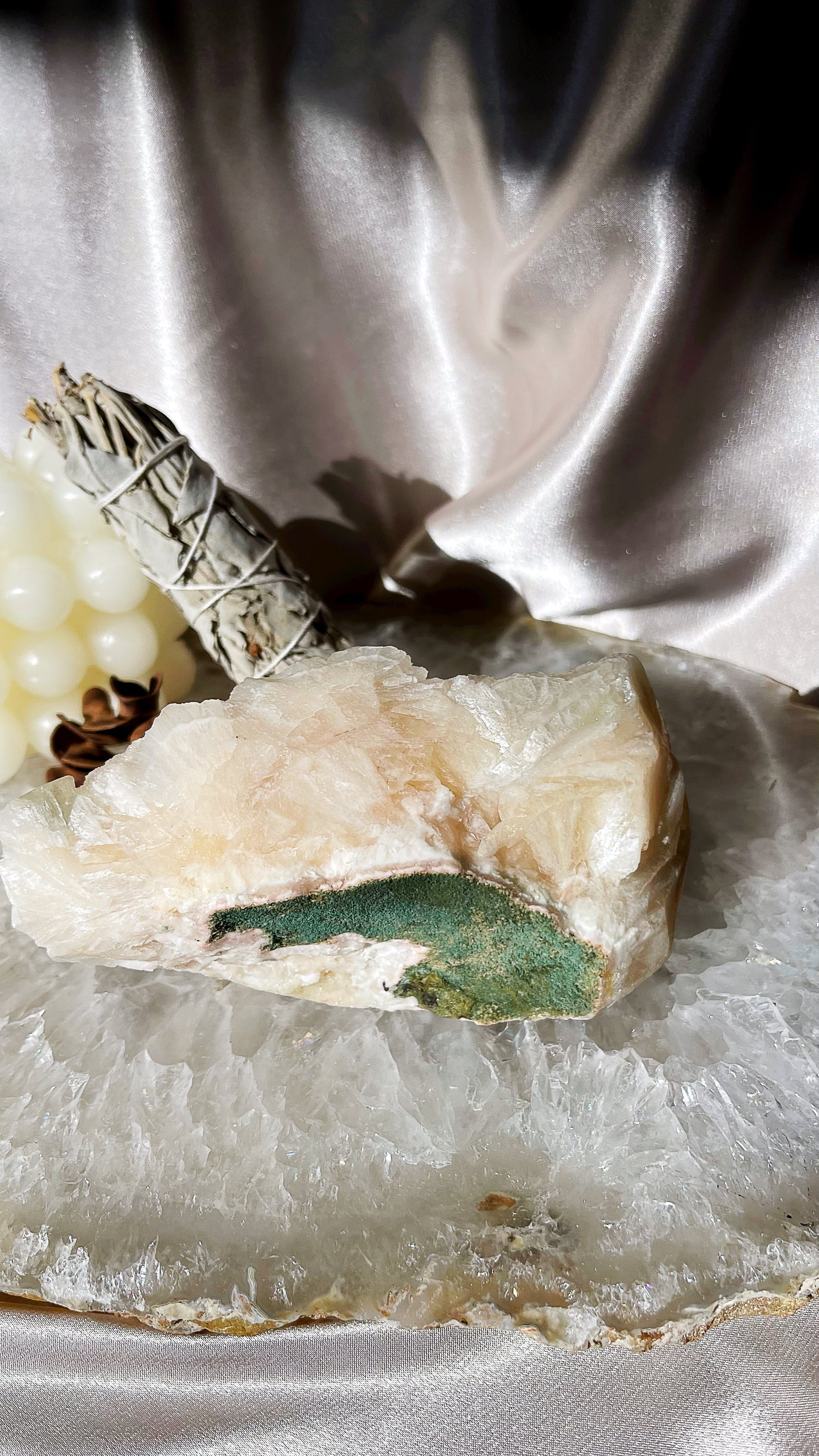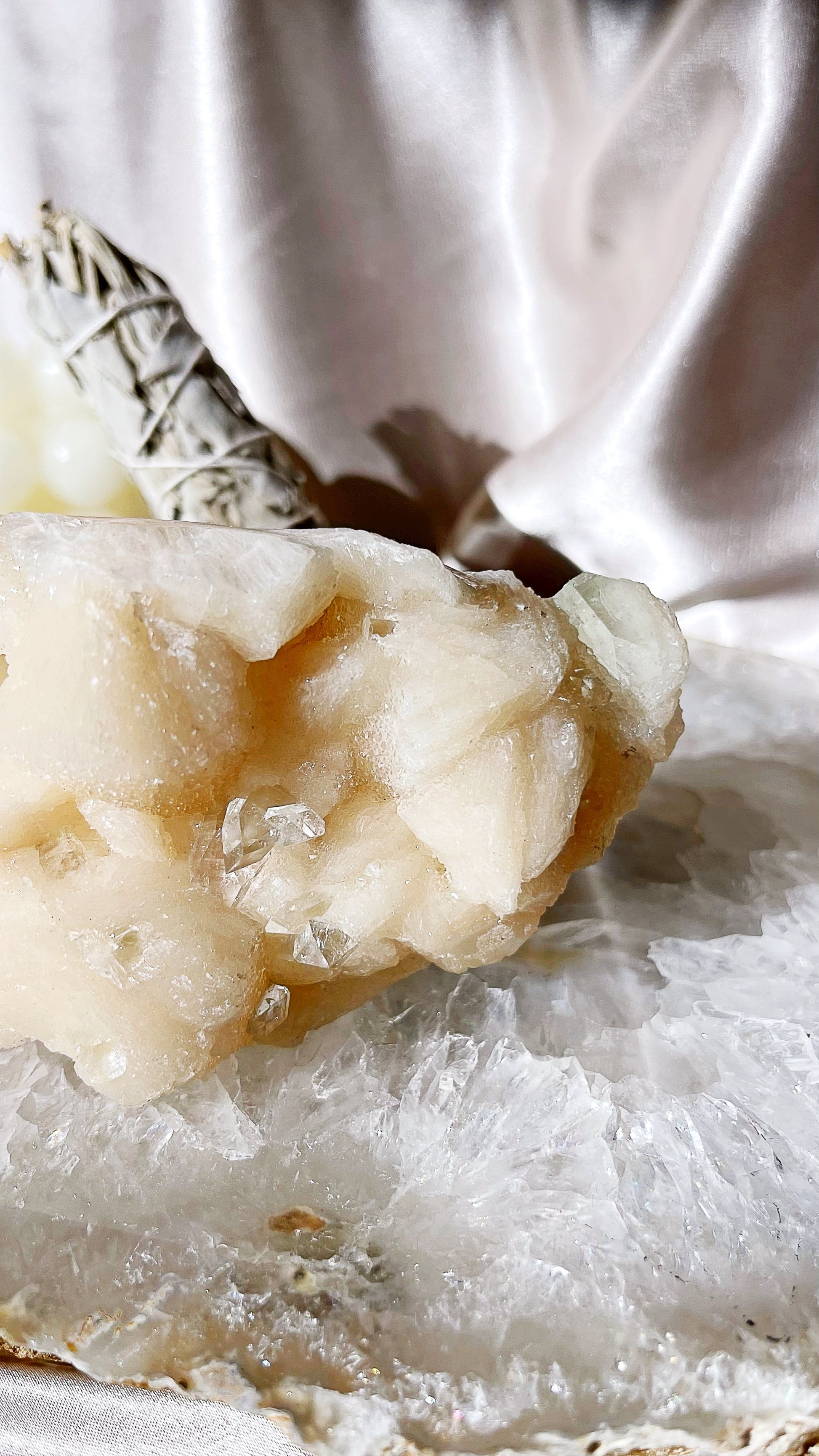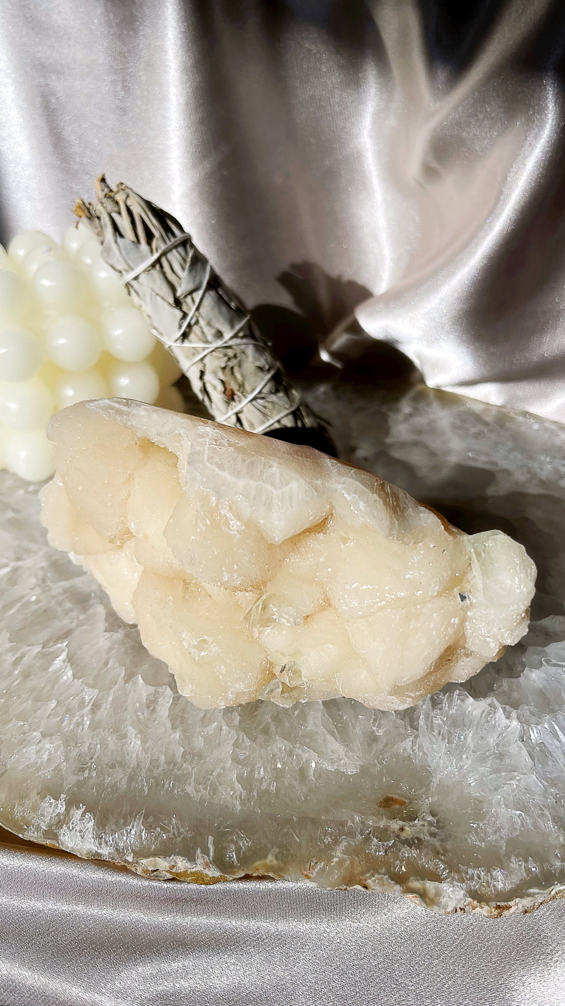 Apophyllite is a very high vibrational stone that helps one attune their energies to those of higher dimensions and realms. It assists in the communication between the angelic realms creating a powerful connection between our Crown & third eye chakra. It is a great stone to meditate with allowing what comes forth to be made clear & assisting in expanding ones consciousness