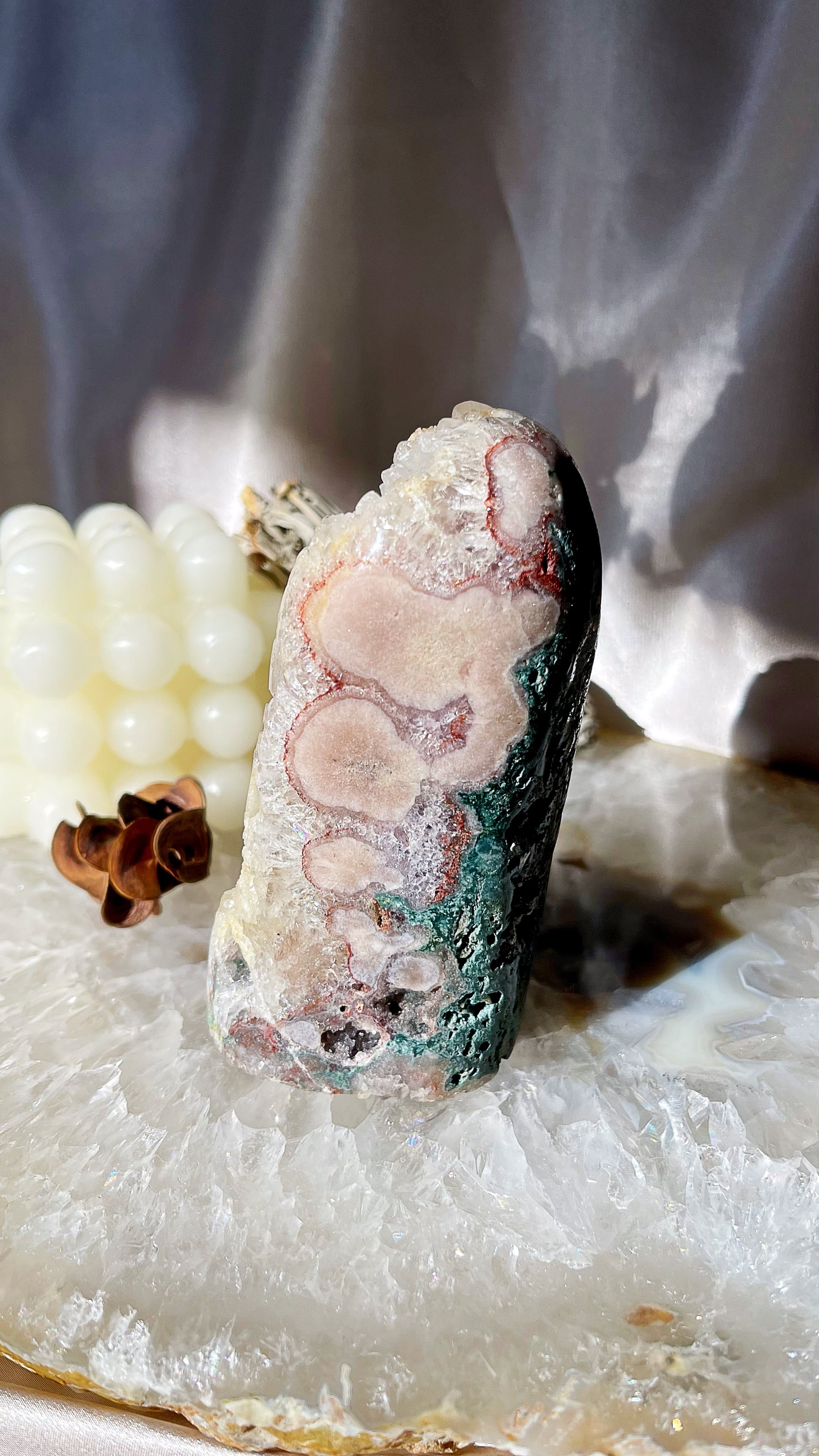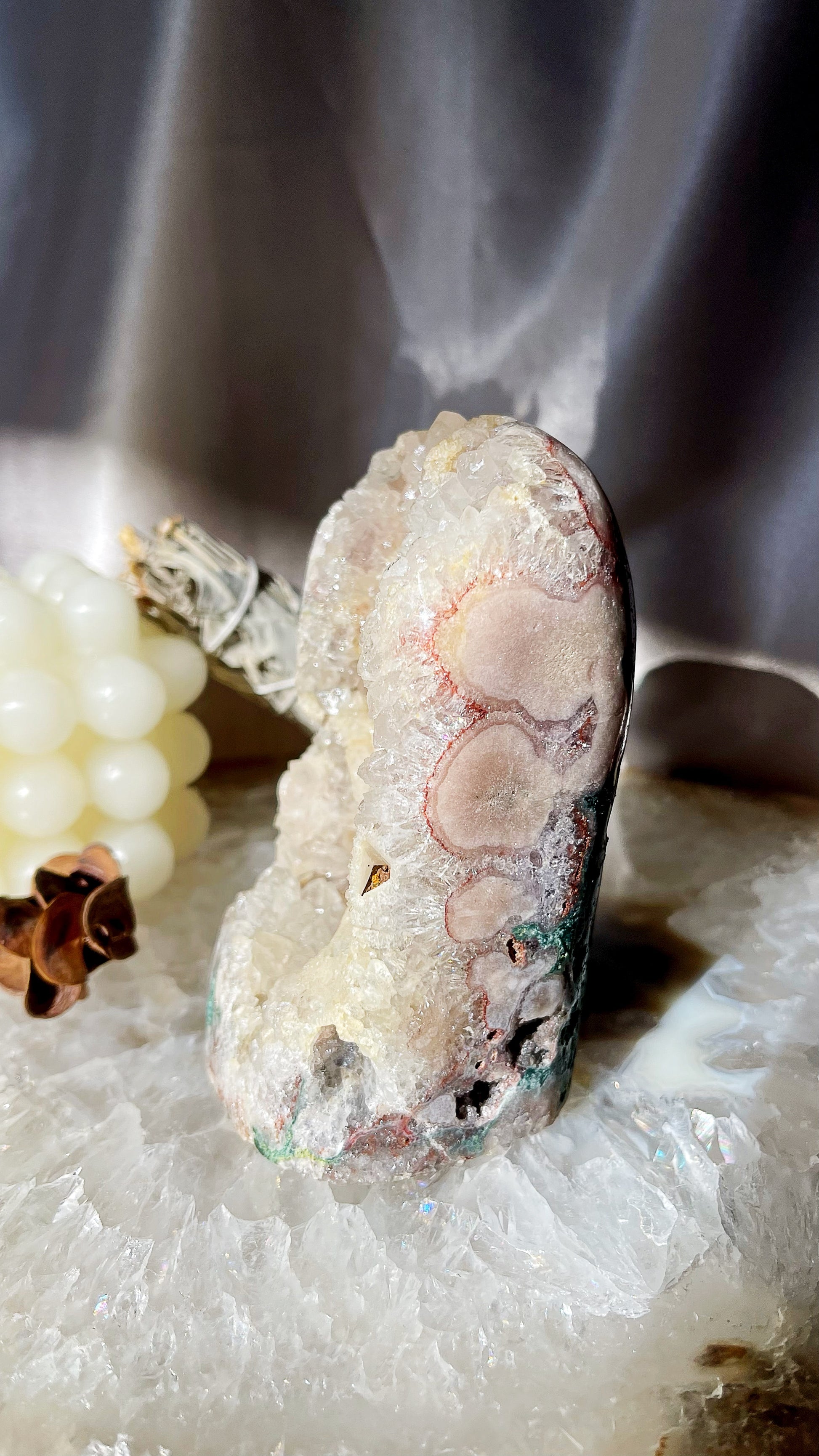 Pink amethyst is a newly found crystal founded in Argentina in 2018. It carries the divine feminine energies bringing a sense of calmness throughout your living spaces and into your life. With the presence of its feminine energies, it is known to increase your intuition, an emotional balancer, wash away any negative thoughts or feelings, it is a comforter and a womb warmer. It truly does carry a feminine motherly energy.