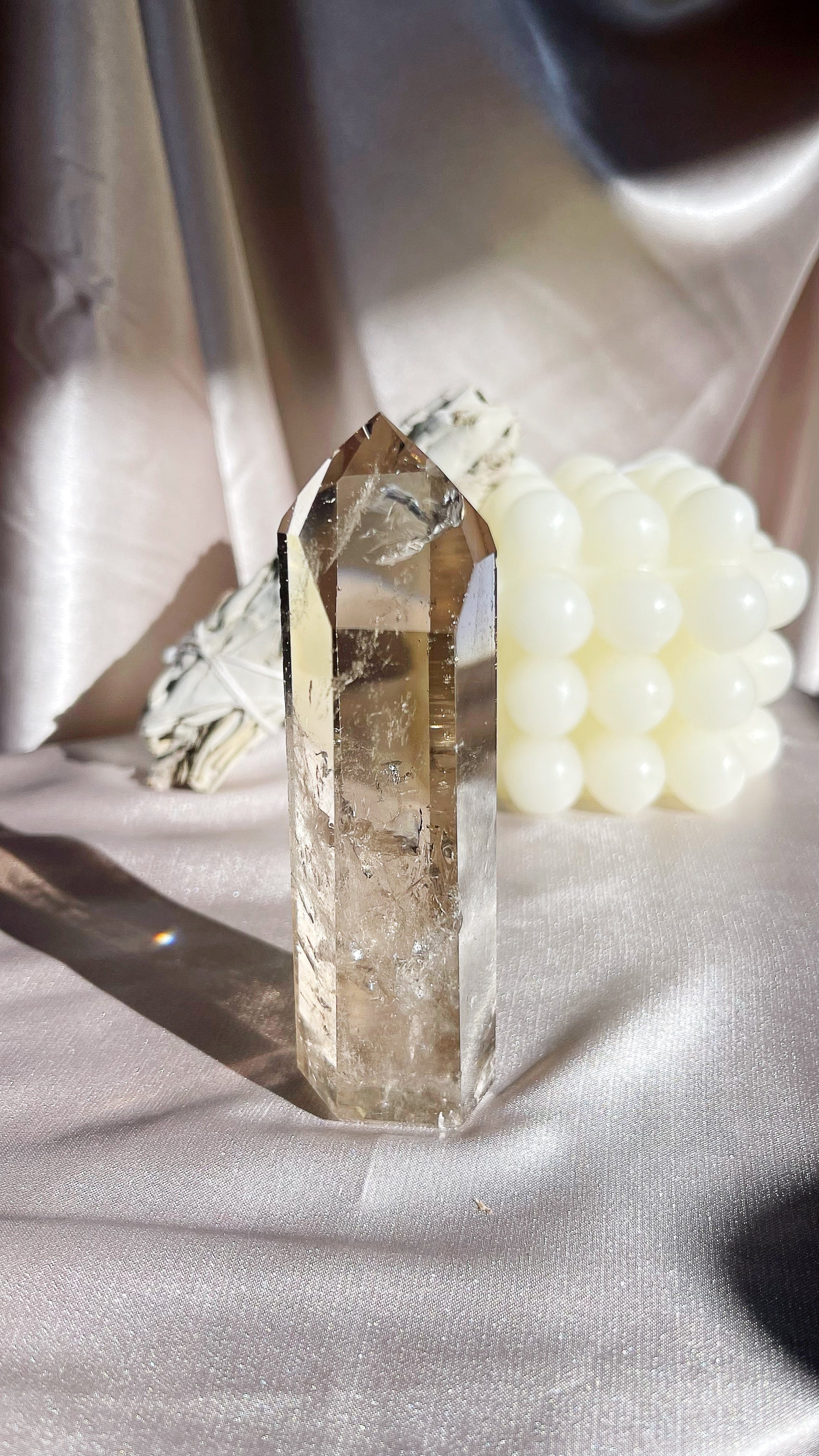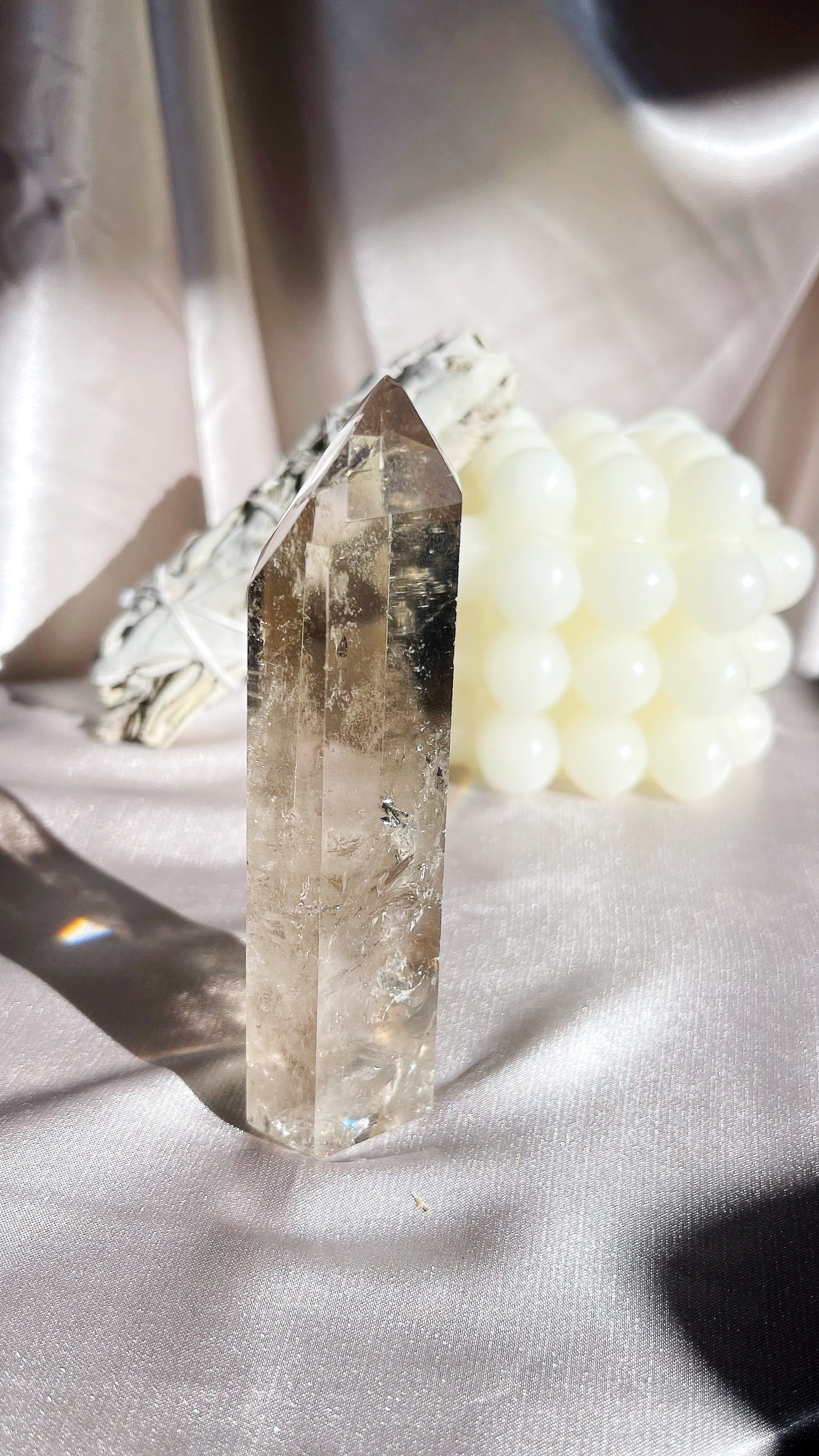 Smokey Quartz is a versatile crystal renowned for its healing properties and profound symbolism. As a grounding and protective stone, it fosters a deep connection with the Earth's energies, instilling stability and a sense of security. Emotionally, it aids in dispelling negativity, such as fear and anger, promoting emotional equilibrium and inner peace. Smokey Quartz is a potent stress-reliever, enabling the release of worries and anxieties. Spiritually, it facilitates growth and meditation, opening the door to higher consciousness. Additionally, it acts as a shield against negative energies, transmuting them into positivity. Metaphysically, Smokey Quartz signifies transformation, grounding, and balance, making it a cherished tool for those seeking personal growth and protection against psychic disturbances.