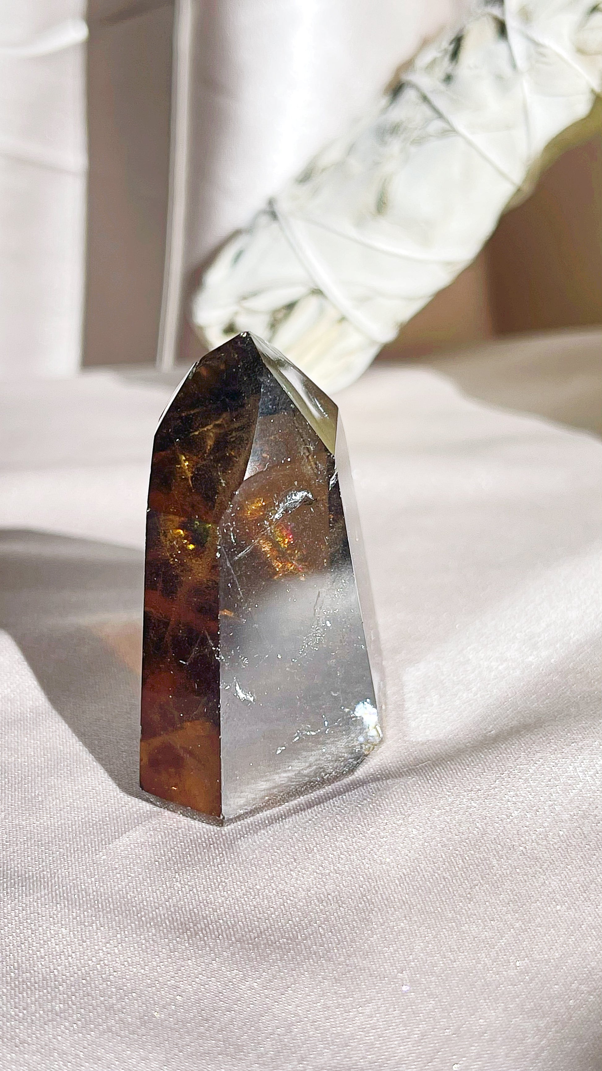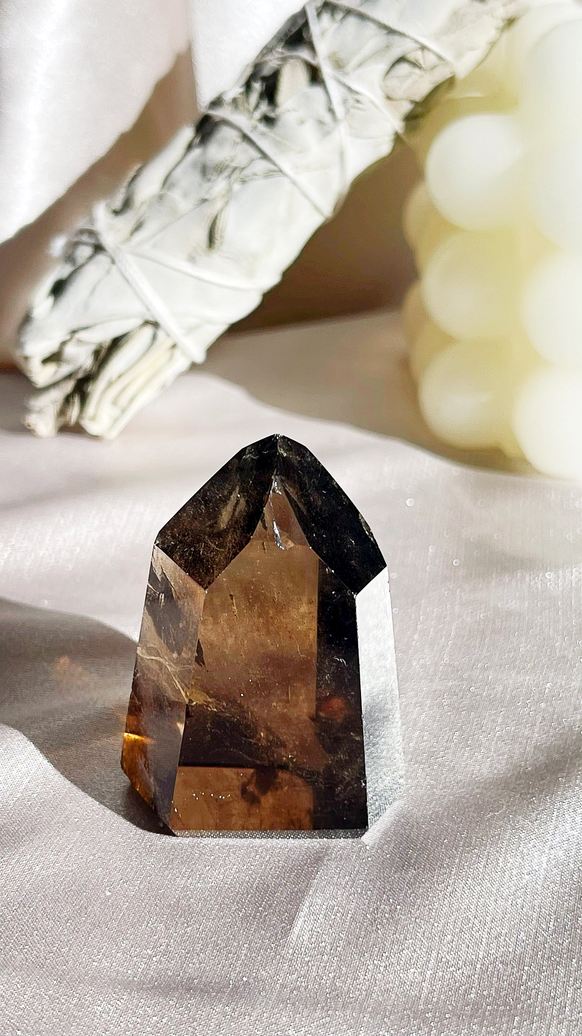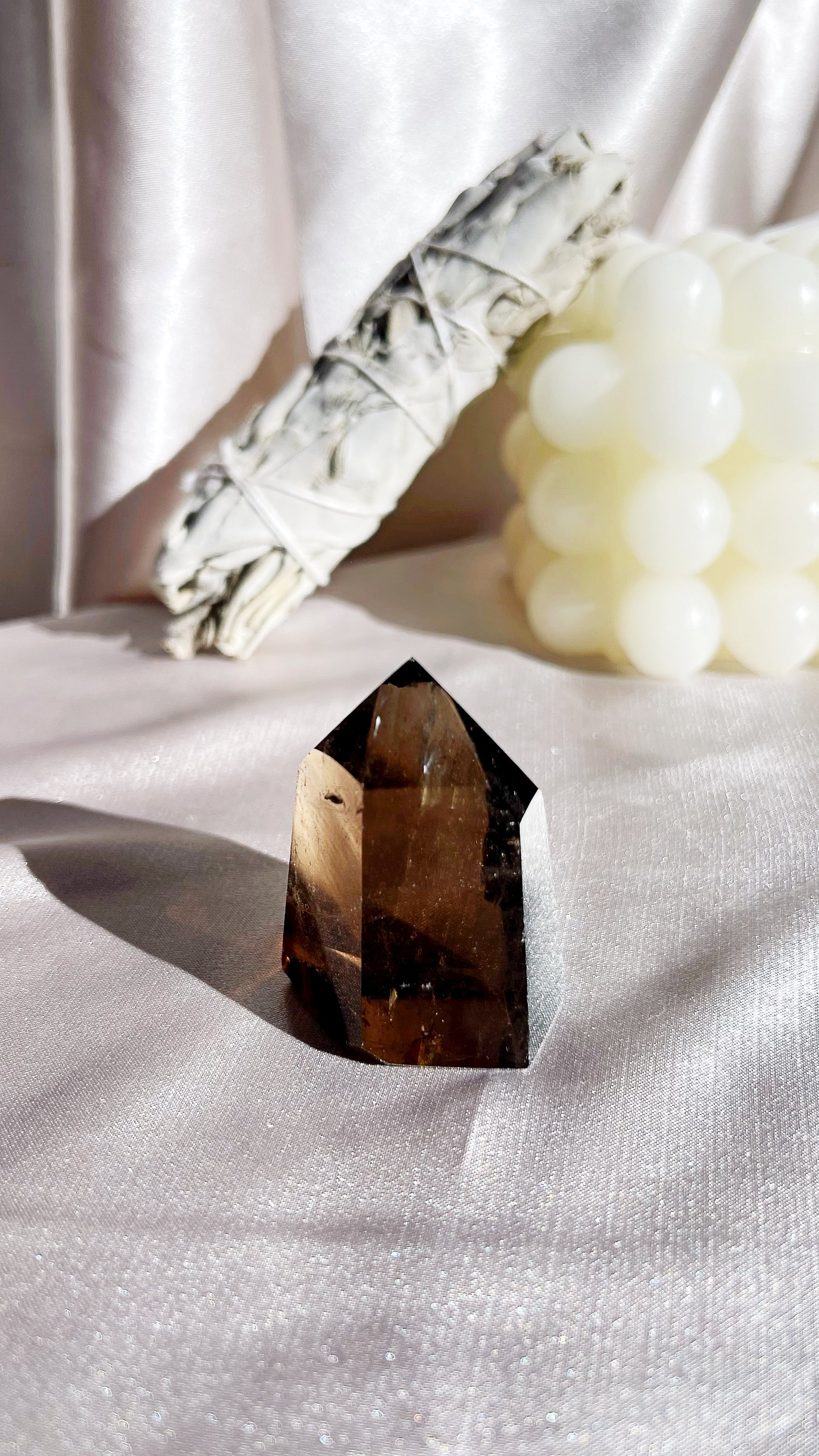 Smokey Quartz is a versatile crystal renowned for its healing properties and profound symbolism. As a grounding and protective stone, it fosters a deep connection with the Earth's energies, instilling stability and a sense of security. Emotionally, it aids in dispelling negativity, such as fear and anger, promoting emotional equilibrium and inner peace. Smokey Quartz is a potent stress-reliever, enabling the release of worries and anxieties. Spiritually, it facilitates growth and meditation, opening the door to higher consciousness. Additionally, it acts as a shield against negative energies, transmuting them into positivity. Metaphysically, Smokey Quartz signifies transformation, grounding, and balance, making it a cherished tool for those seeking personal growth and protection against psychic disturbances.