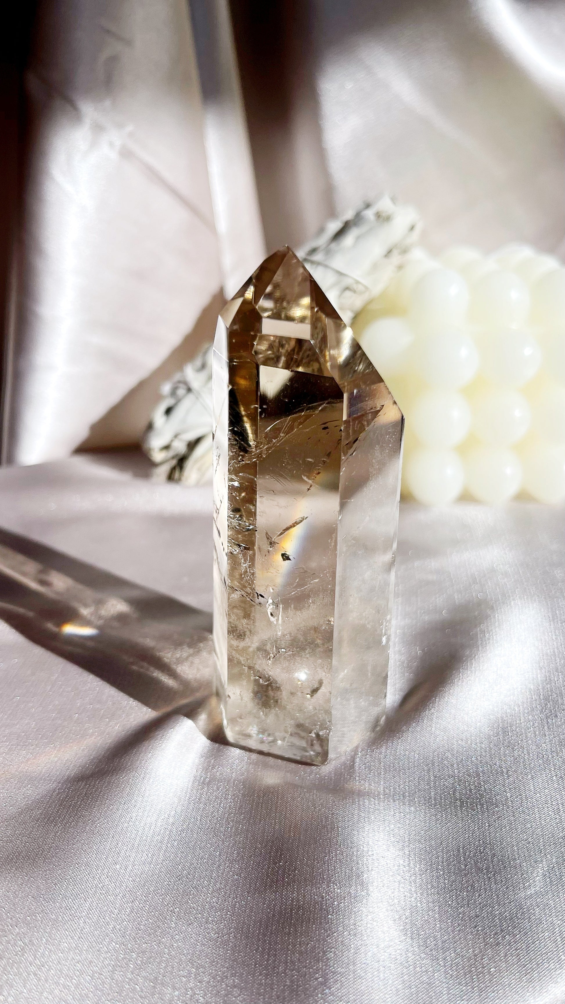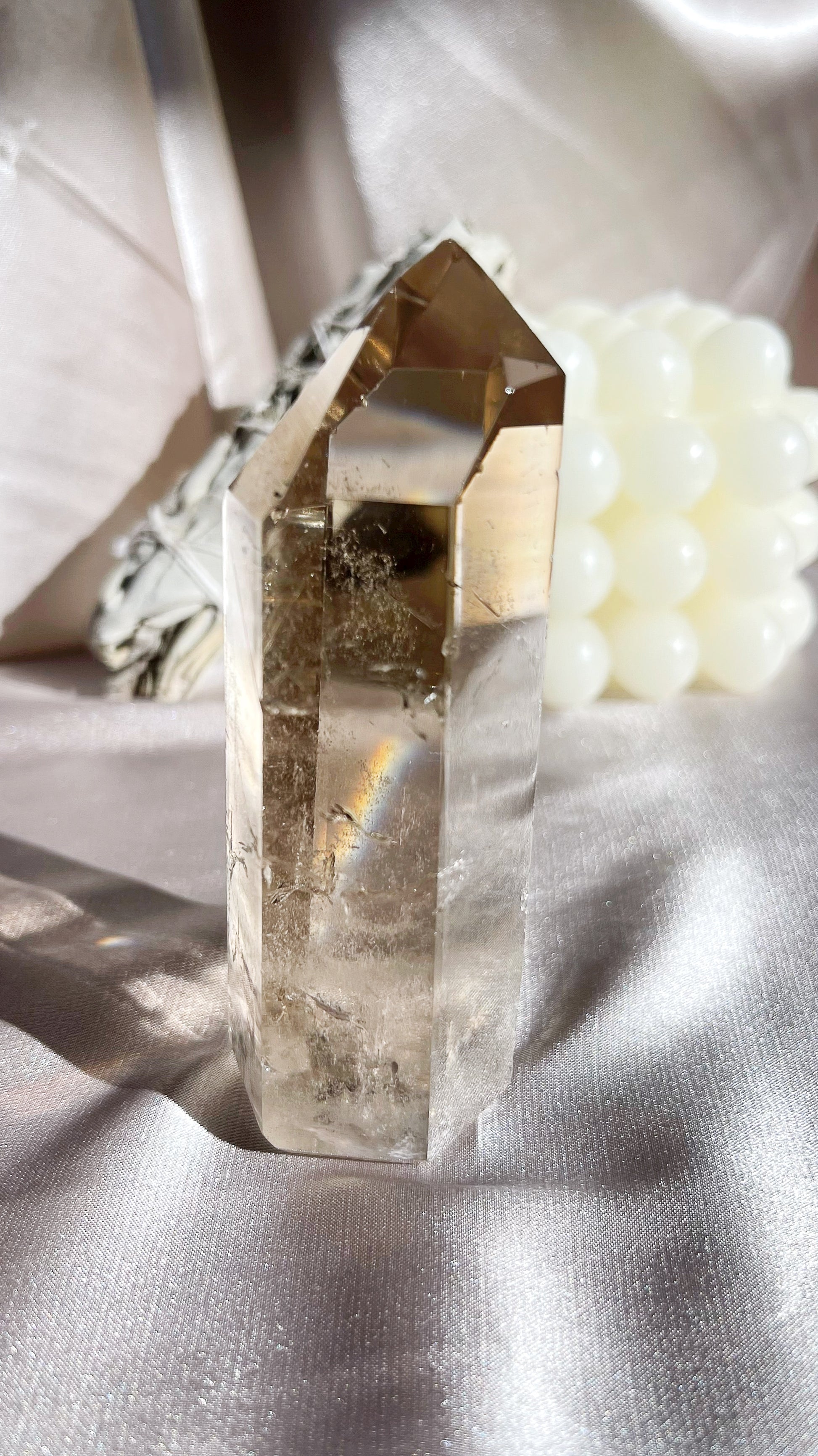 Smokey Quartz is a versatile crystal renowned for its healing properties and profound symbolism. As a grounding and protective stone, it fosters a deep connection with the Earth's energies, instilling stability and a sense of security. Emotionally, it aids in dispelling negativity, such as fear and anger, promoting emotional equilibrium and inner peace. Smokey Quartz is a potent stress-reliever, enabling the release of worries and anxieties. Spiritually, it facilitates growth and meditation, opening the door to higher consciousness. Additionally, it acts as a shield against negative energies, transmuting them into positivity. Metaphysically, Smokey Quartz signifies transformation, grounding, and balance, making it a cherished tool for those seeking personal growth and protection against psychic disturbances.