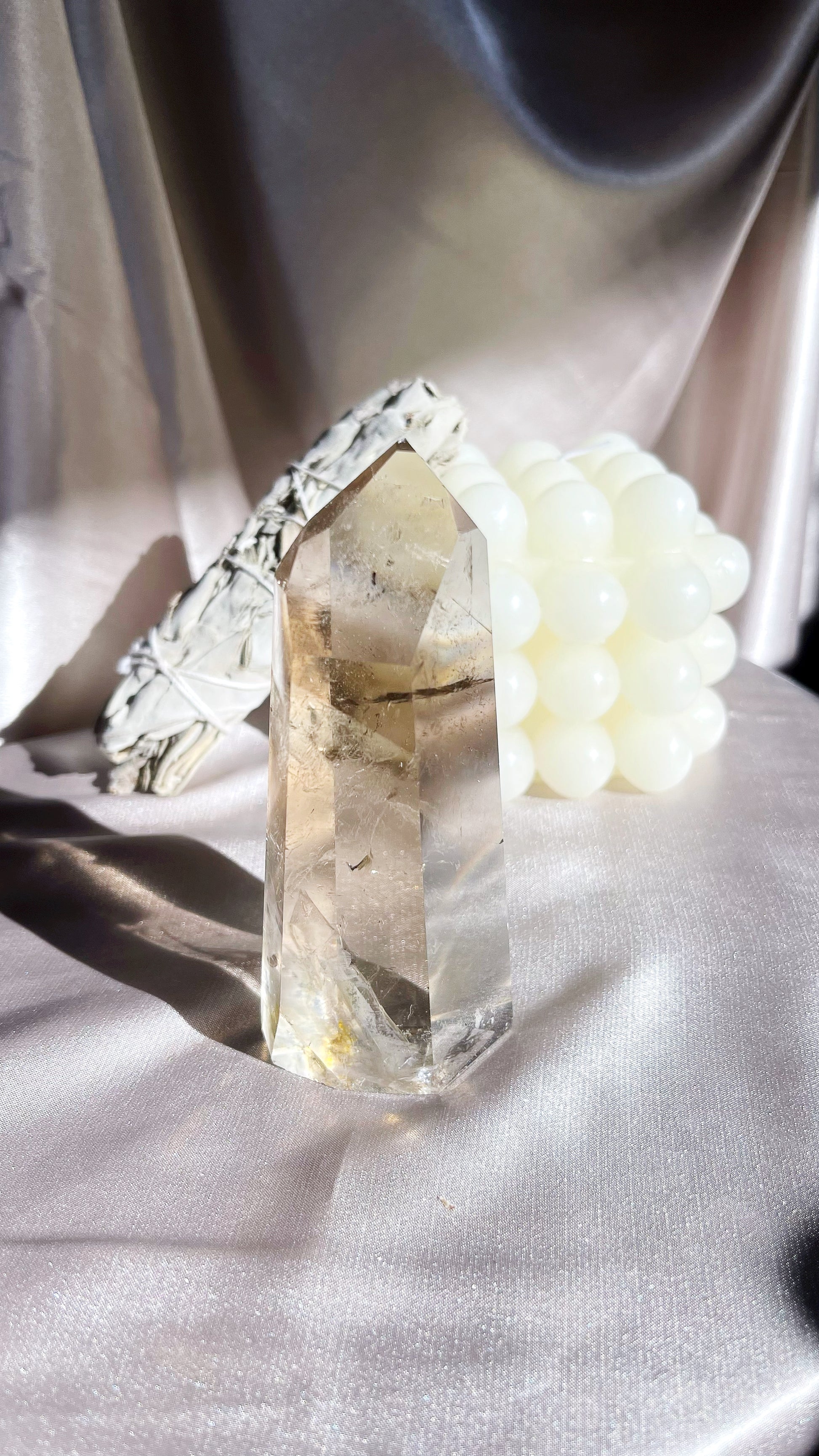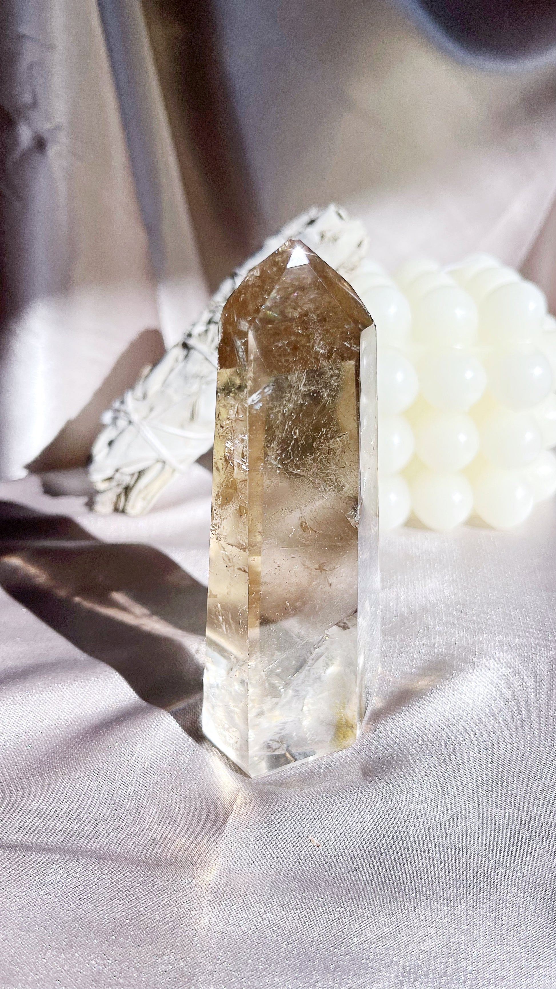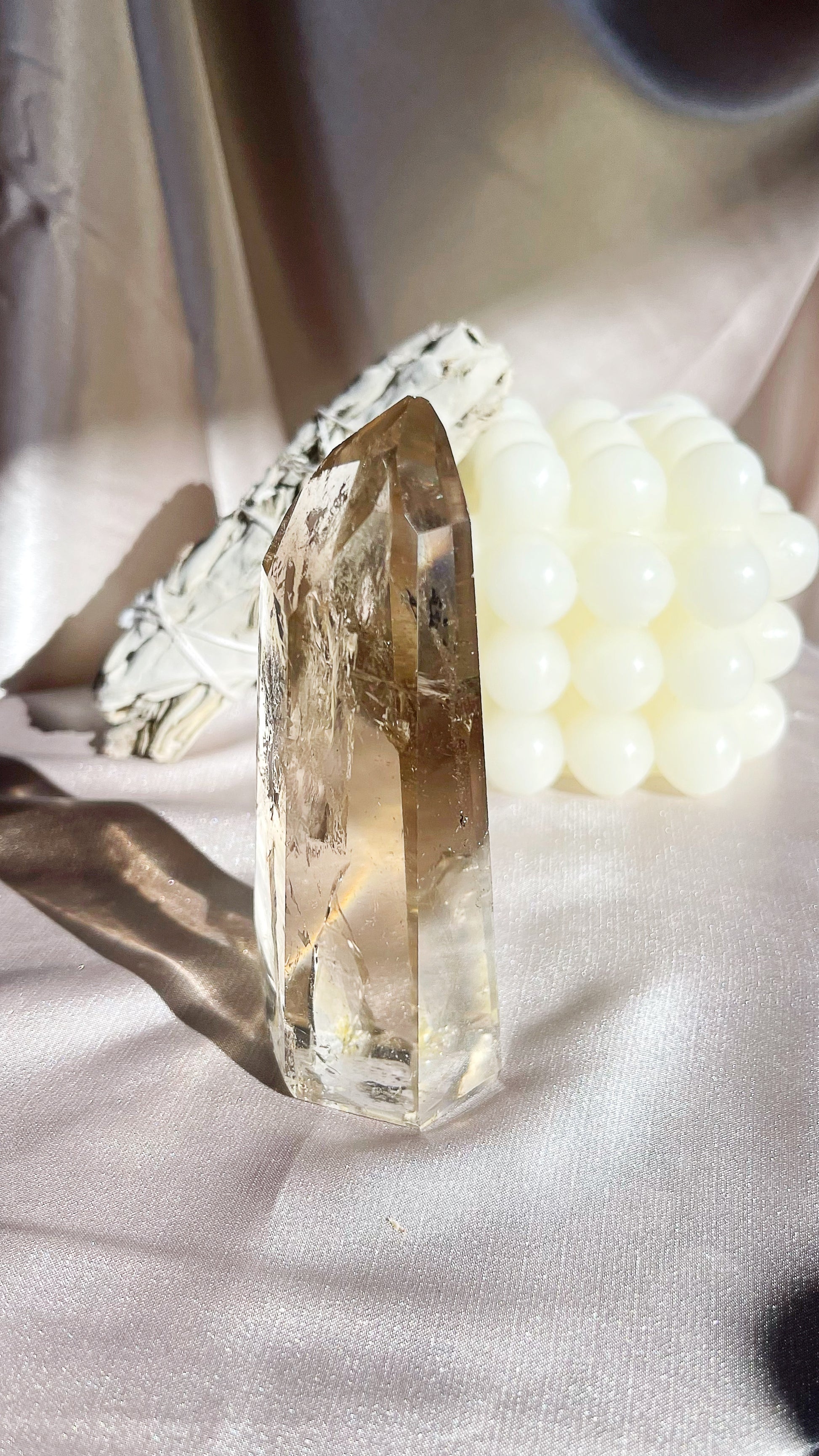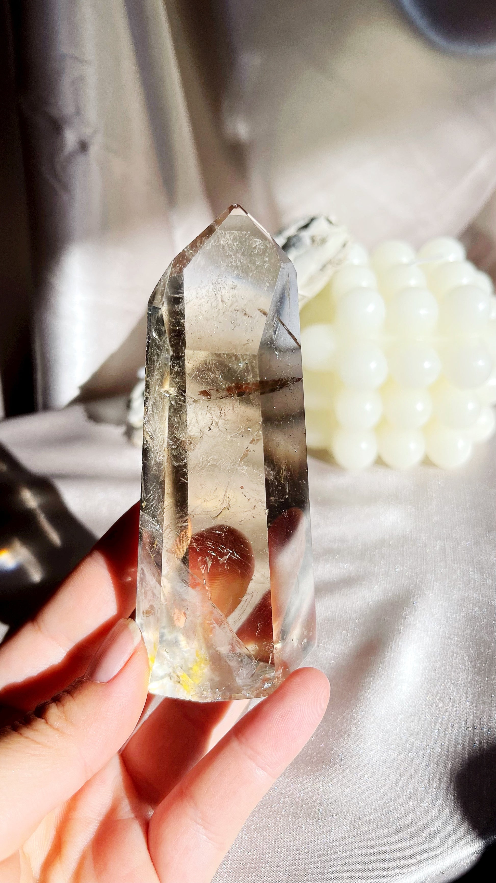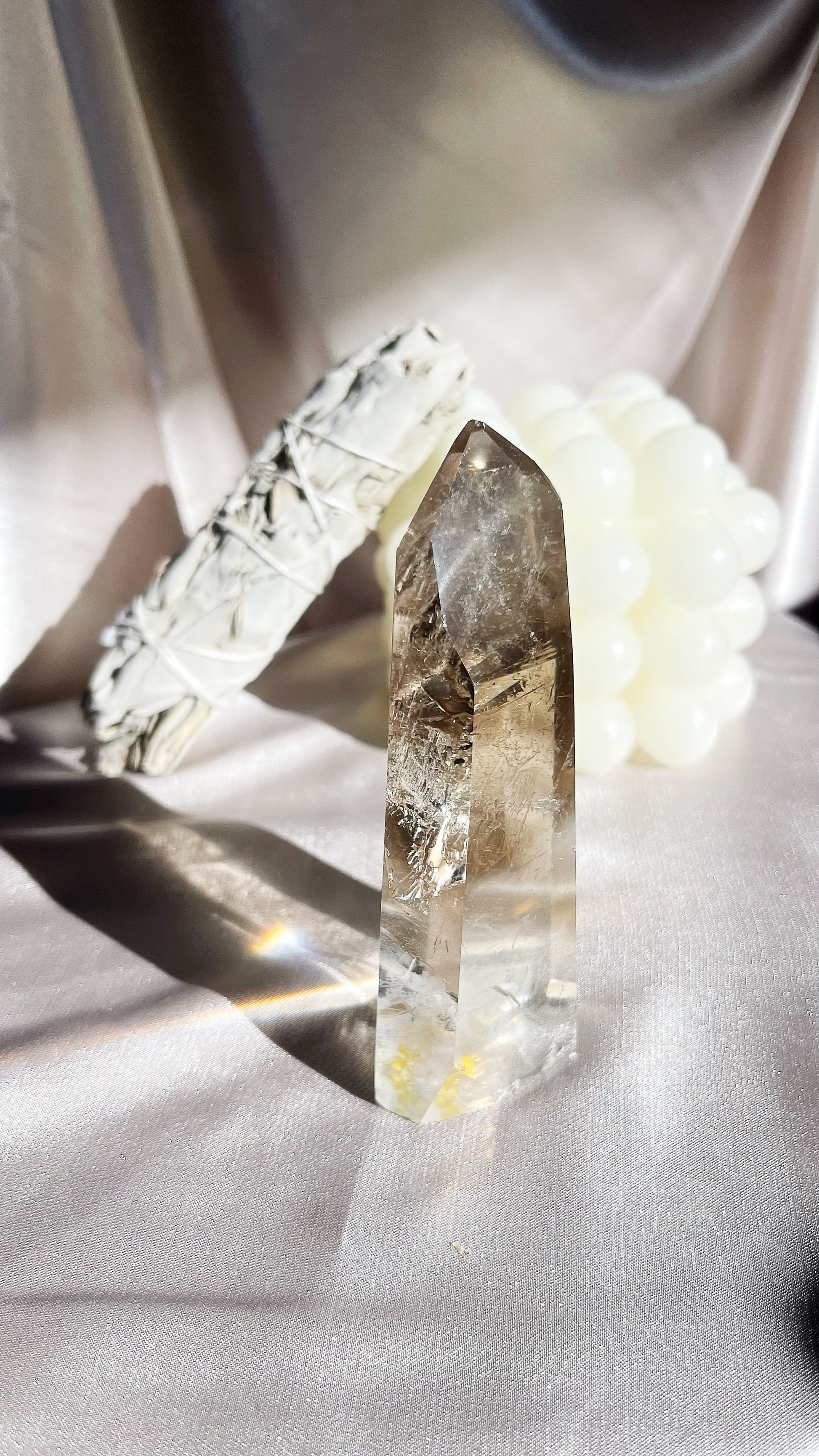 Smokey Quartz is a versatile crystal renowned for its healing properties and profound symbolism. As a grounding and protective stone, it fosters a deep connection with the Earth's energies, instilling stability and a sense of security. Emotionally, it aids in dispelling negativity, such as fear and anger, promoting emotional equilibrium and inner peace. Smokey Quartz is a potent stress-reliever, enabling the release of worries and anxieties. Spiritually, it facilitates growth and meditation, opening the door to higher consciousness. Additionally, it acts as a shield against negative energies, transmuting them into positivity. Metaphysically, Smokey Quartz signifies transformation, grounding, and balance, making it a cherished tool for those seeking personal growth and protection against psychic disturbances.