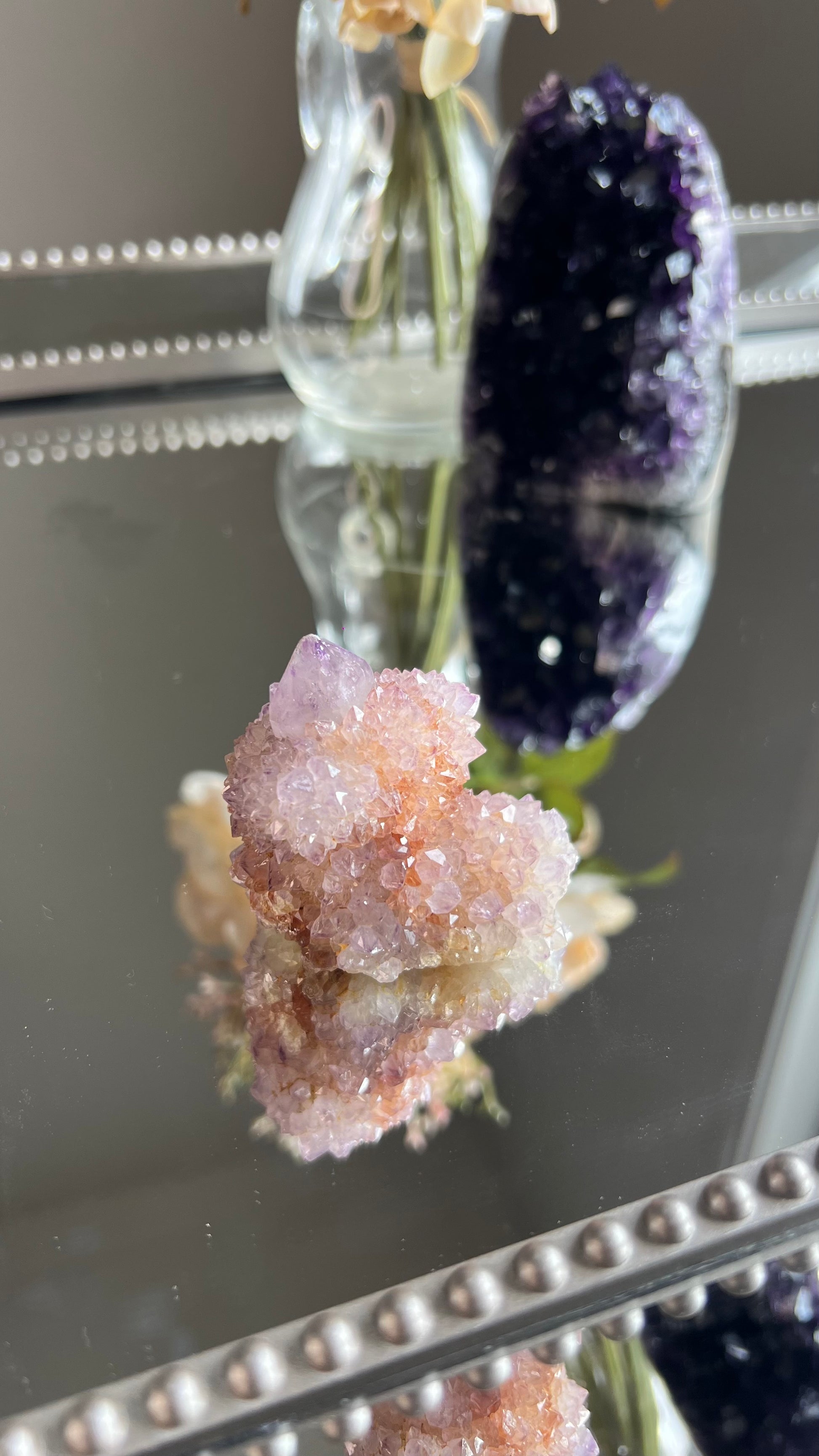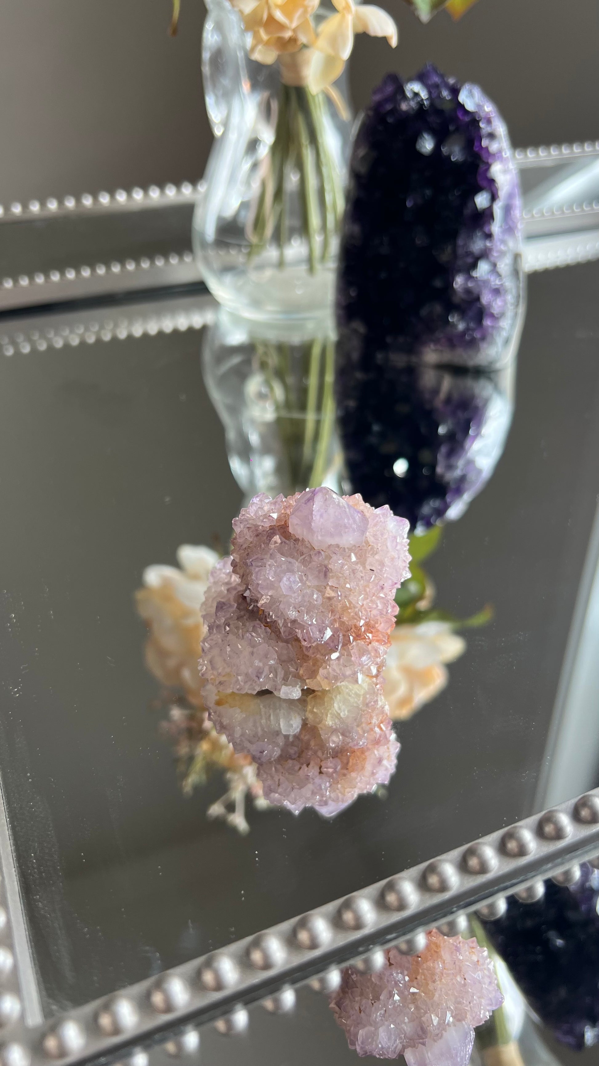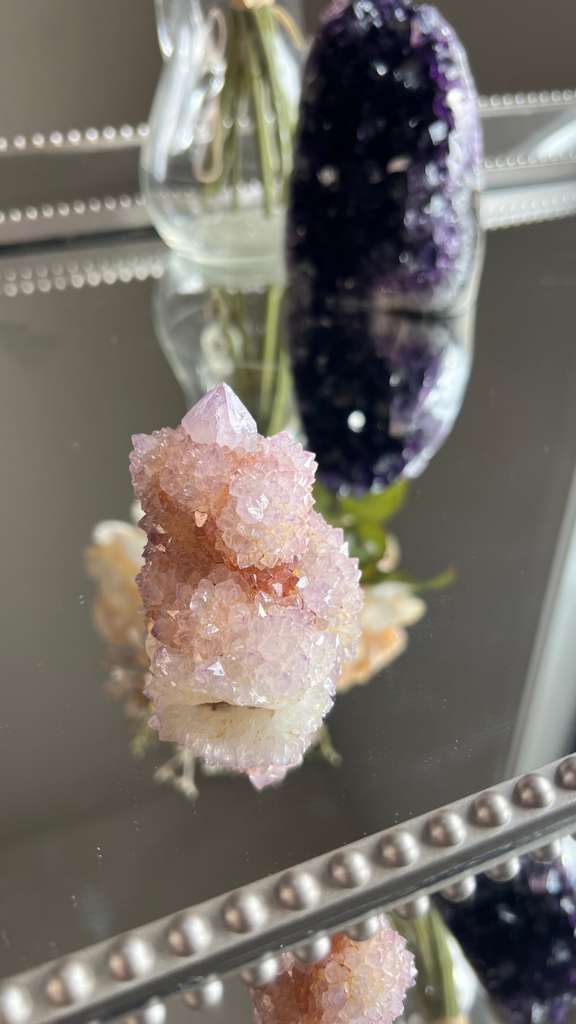 Spirit Quartz or also known as Cactus Quartz is made up of amethyst, citrine & Smokey Quartz. Spirit Quartz radiates with high vibrational energy which is known to facilitate Astral travel & accessing your Akashic Records helping to excel one’s spiritual journey & ascension.