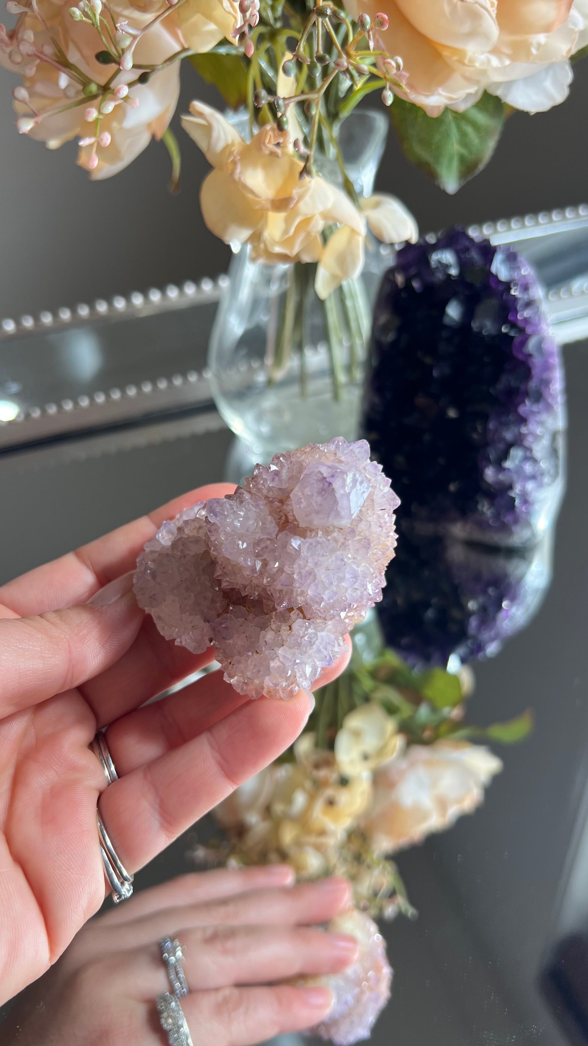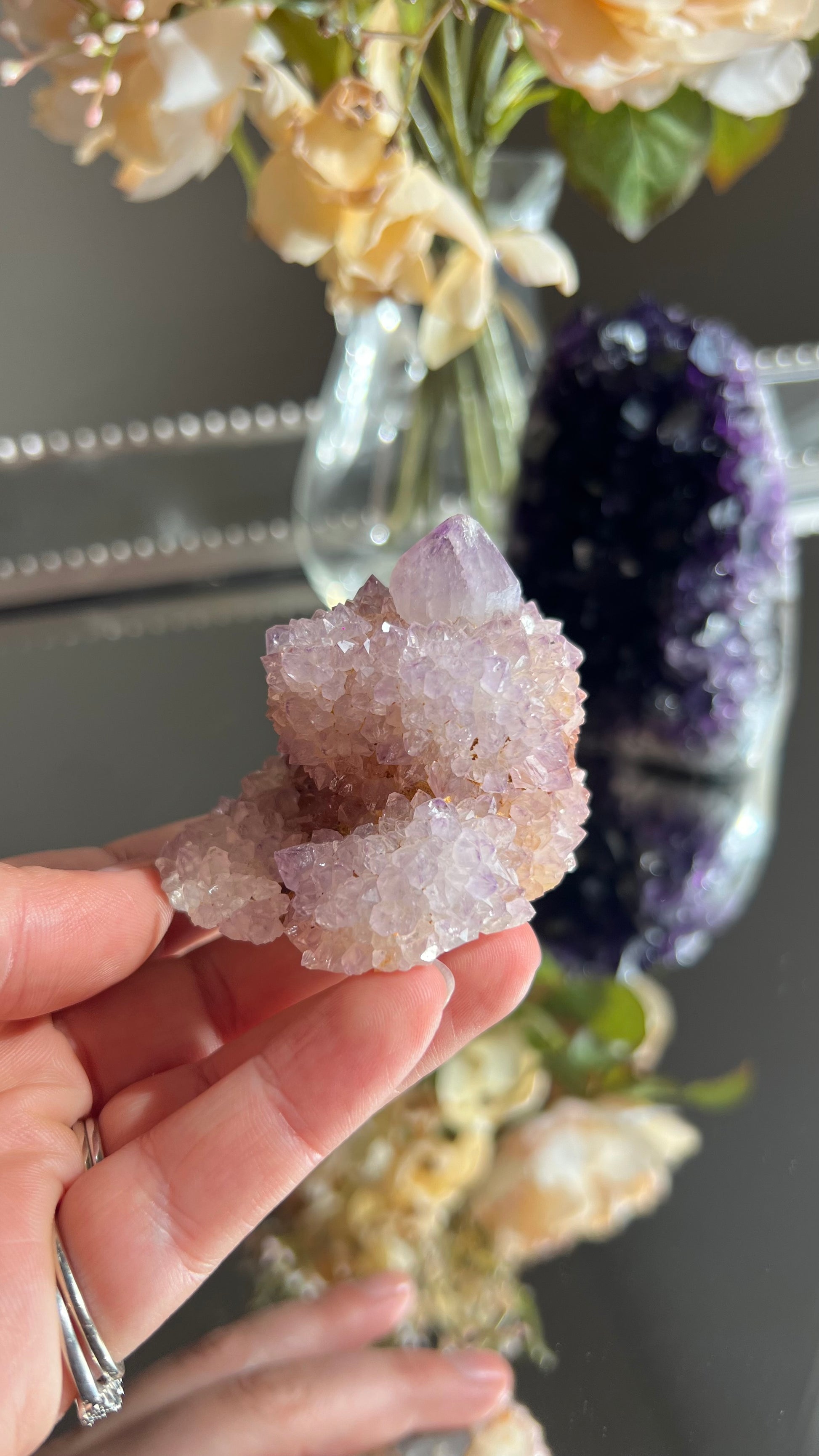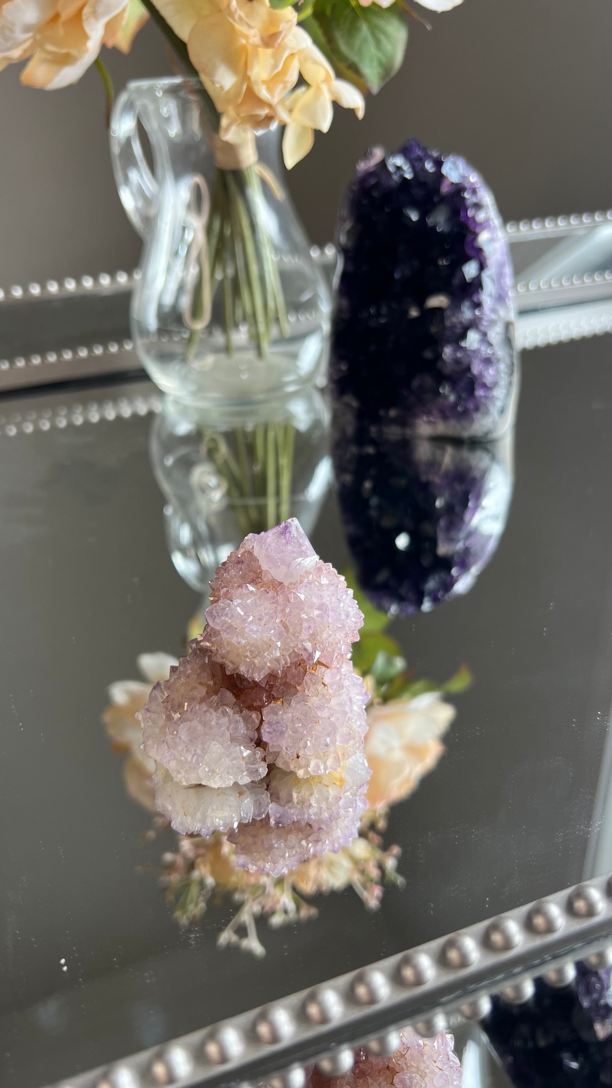 Spirit Quartz or also known as Cactus Quartz is made up of amethyst, citrine & Smokey Quartz. Spirit Quartz radiates with high vibrational energy which is known to facilitate Astral travel & accessing your Akashic Records helping to excel one’s spiritual journey & ascension.