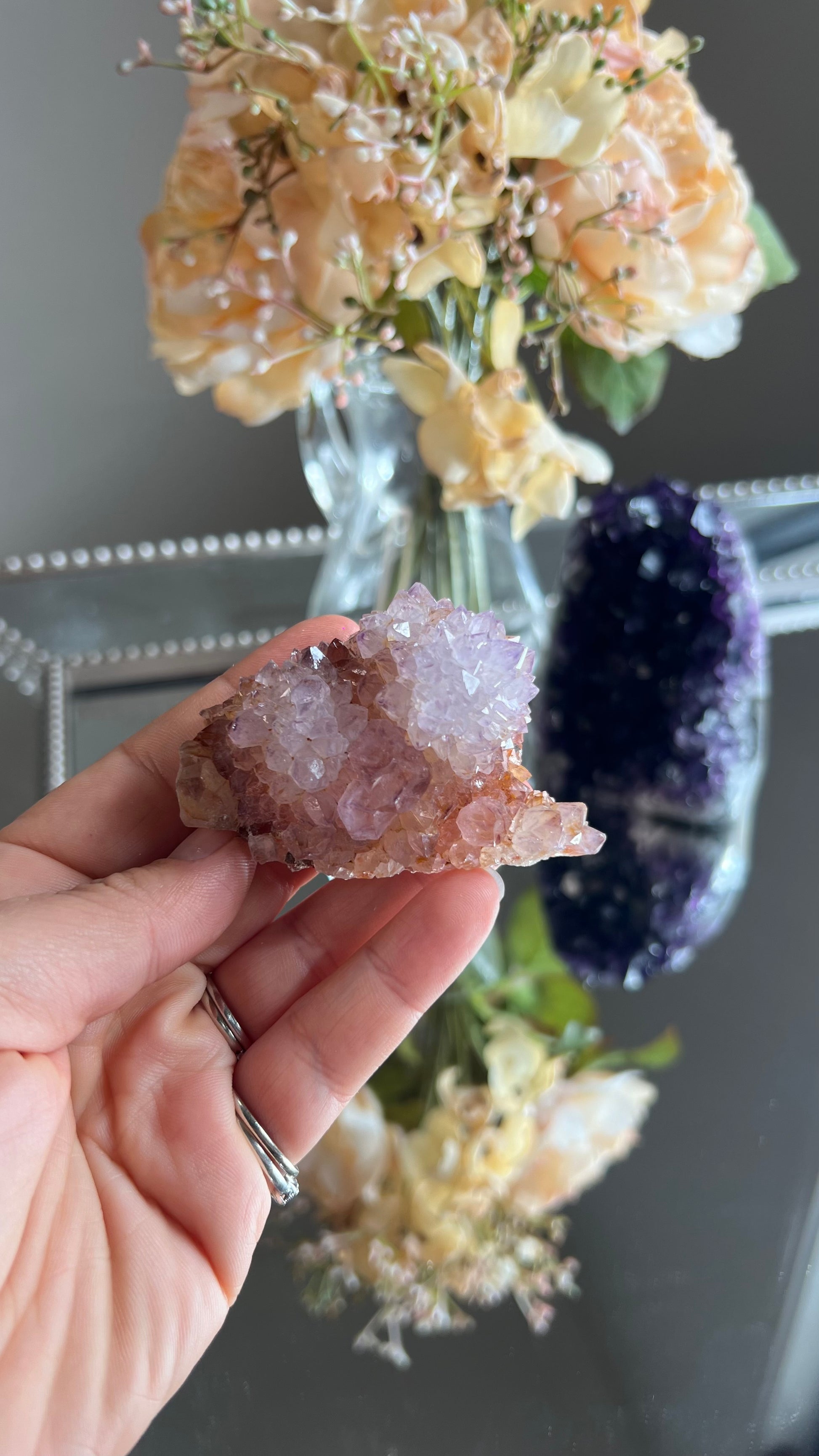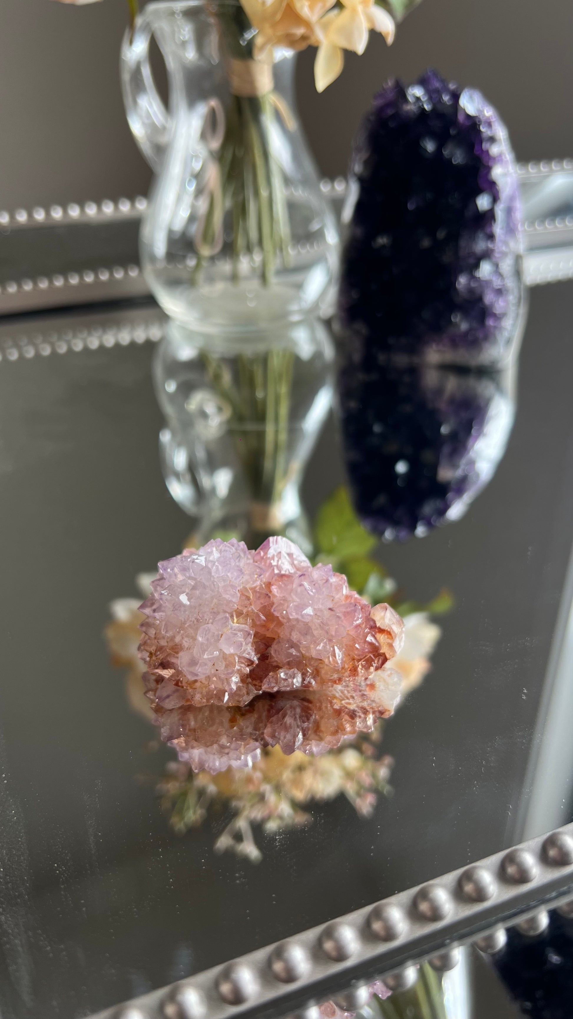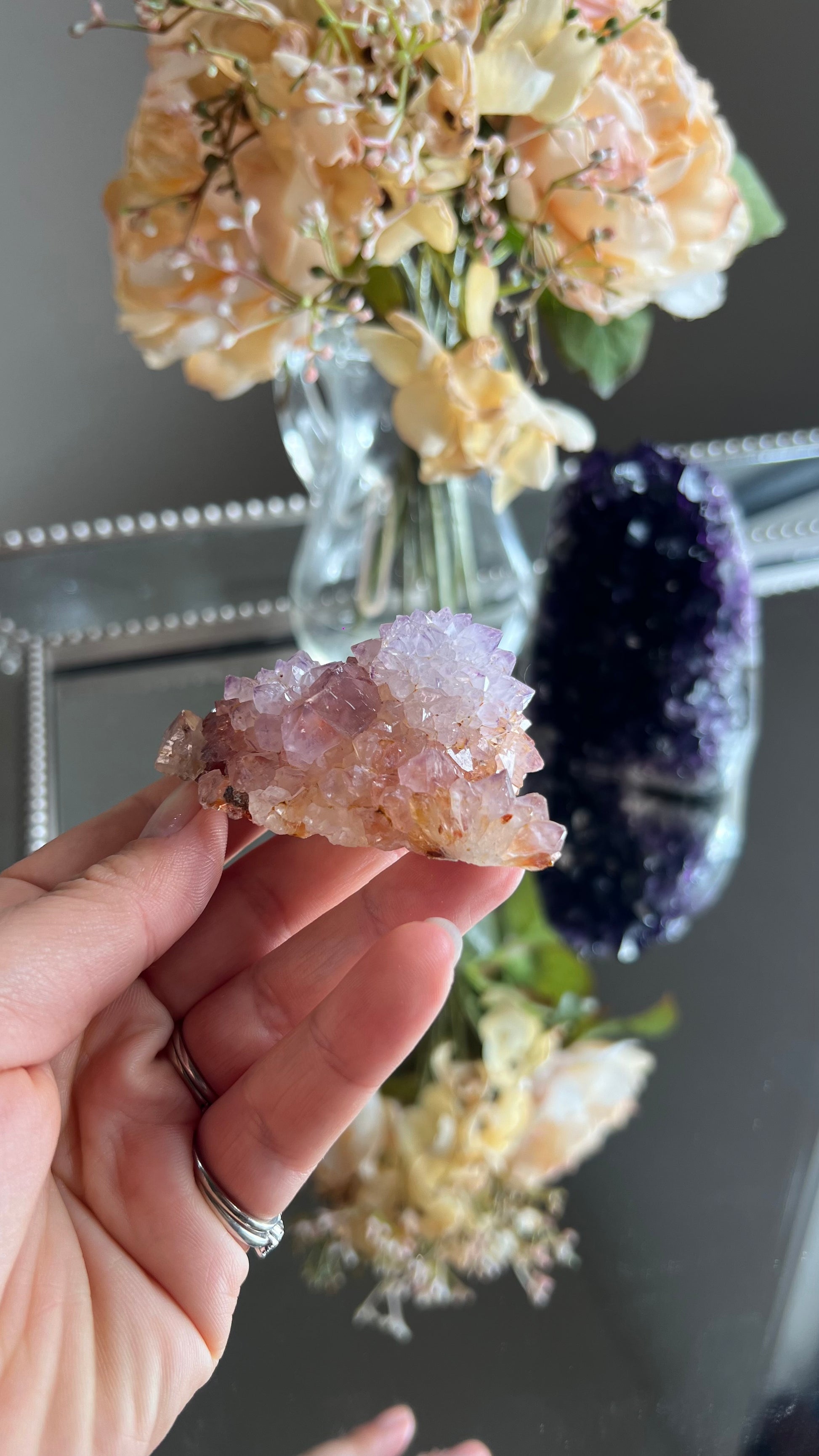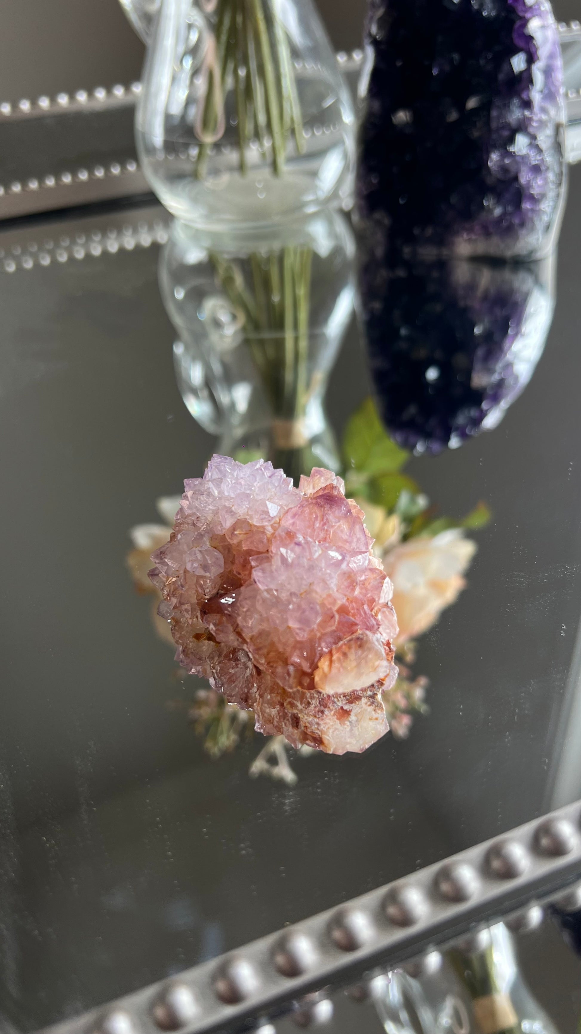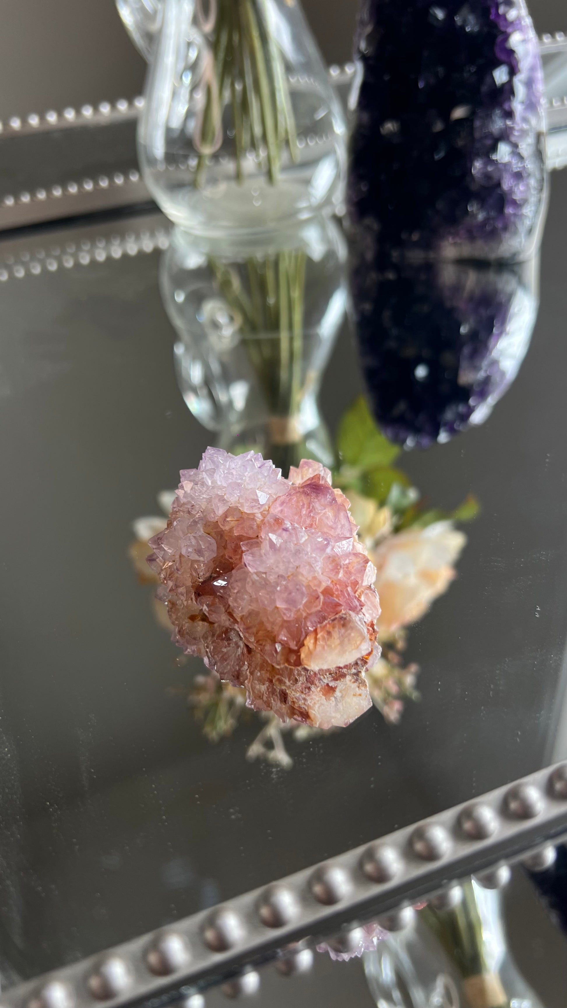 Spirit Quartz or also known as Cactus Quartz is made up of amethyst, citrine & Smokey Quartz. Spirit Quartz radiates with high vibrational energy which is known to facilitate Astral travel & accessing your Akashic Records helping to excel one’s spiritual journey & ascension.